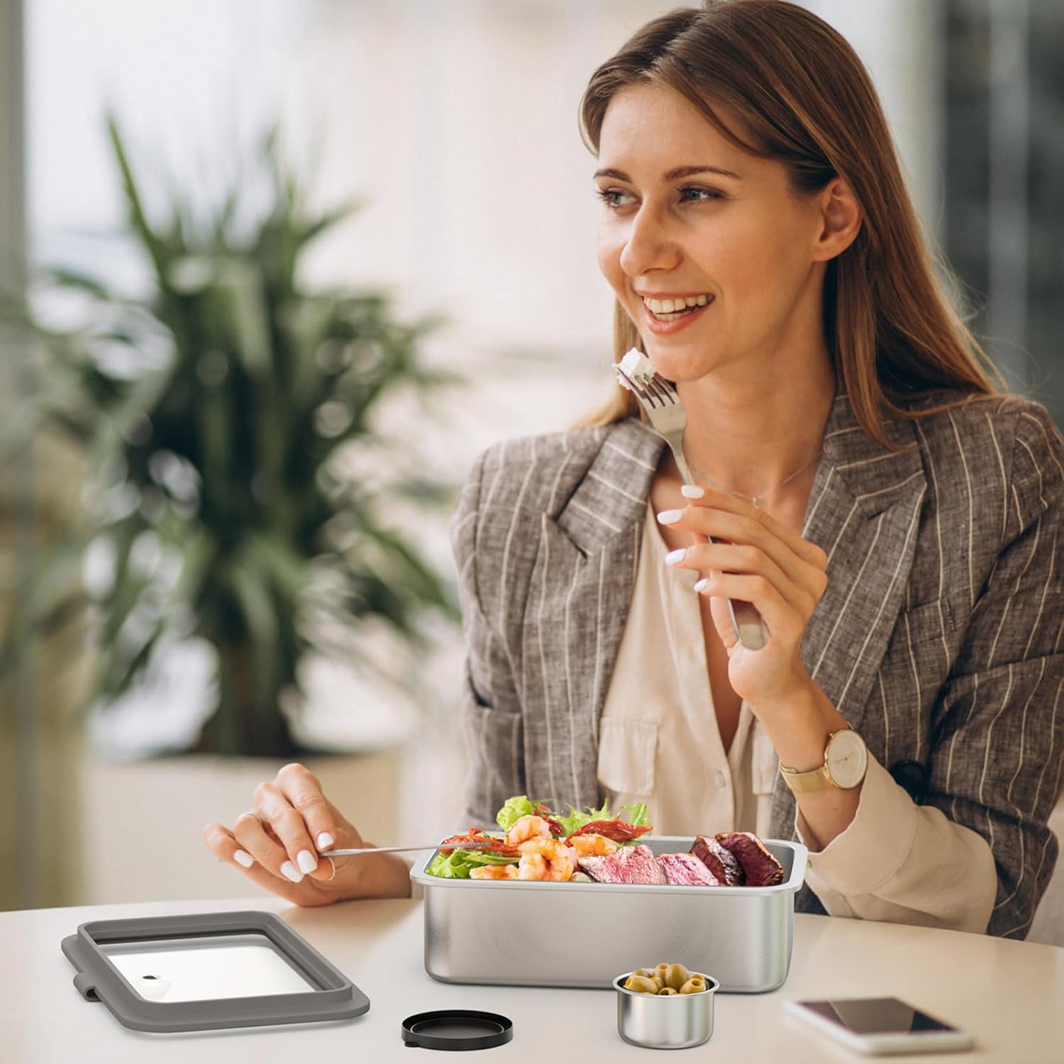 - All-in-One Lunch Solution: This stainless steel bento box for adult comes with a fork and a small sauce/snack/fruit cup, which can be easily put into a lunch bag, backpack or briefcase. Whether you carry it with you, go to work, travel, or fill it with snacks for a family outing, this lunch box can withstand all kinds of tests