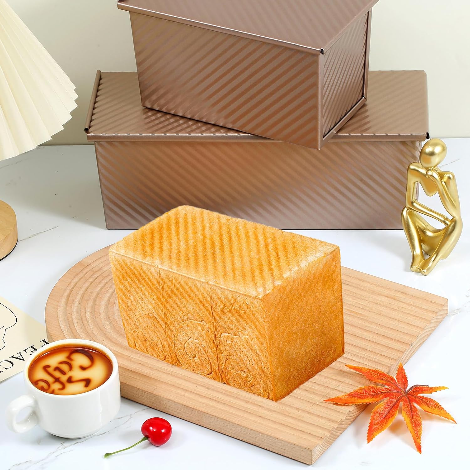 SS&CC Pullman Loaf Pan with Lid 2-Pack, 2.2lb & 1lb Carbon Steel Bread Pan for Homemade Sourdough & Sandwich Bread | Nonstick Bakeware, Heavy Duty & Easy Clean (Gold, 1lb+2.2lb)