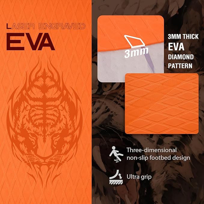 • 【Laser engraved EVA】 Surface laser engraved 3mm thick EVA diamond pattern, high coefficient of friction (≥0.6), wet still maintain a strong grip, with three-dimensional non-slip foot pad design, to avoid slipping and falling, the safety coefficient of pull full.