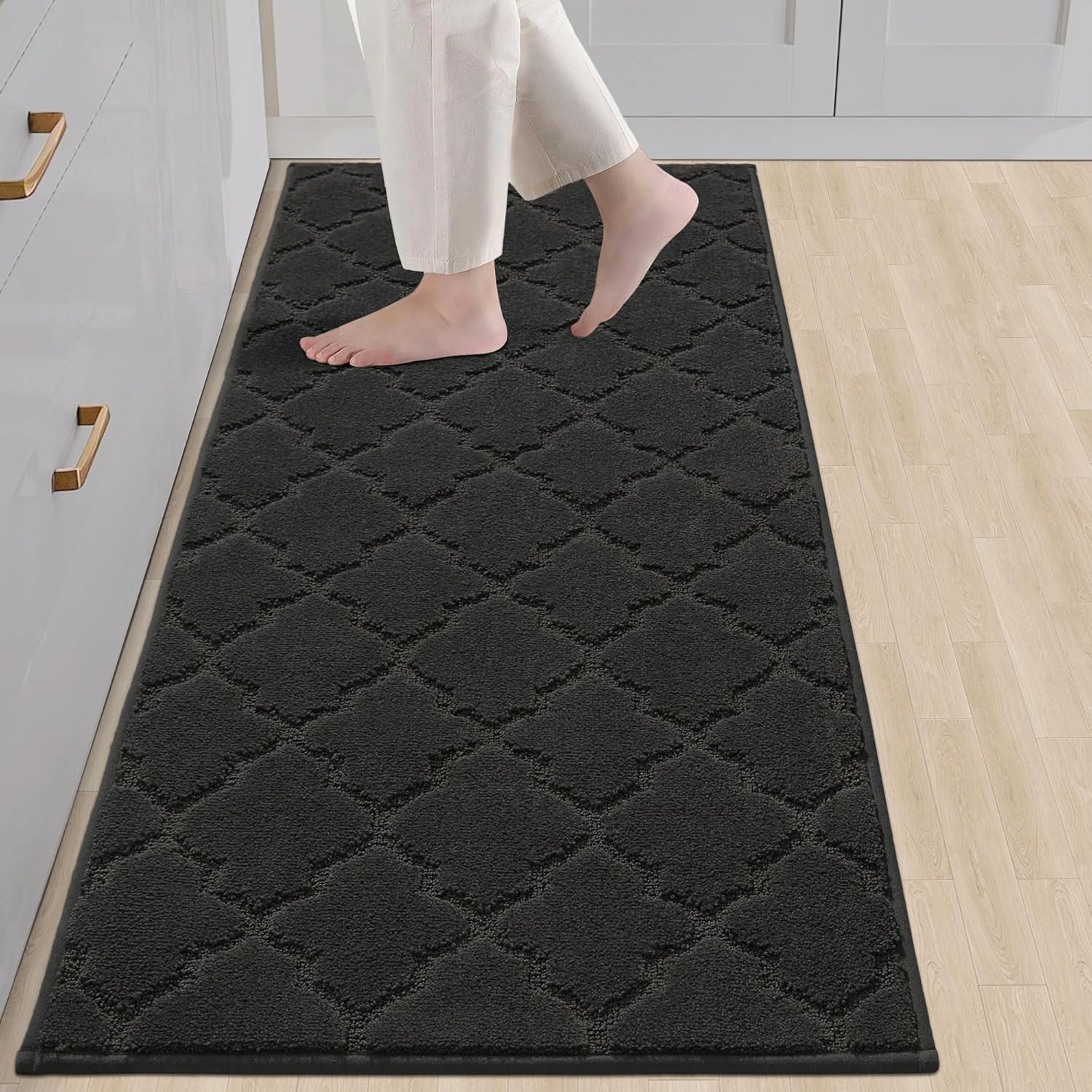 COSY HOMEER-Kitchen-Rugs-Non-Slip-Washable 24"x60" Absorbent Kitchen Runner Rug Polyester Kitchen Mats for Floor Soft Standing Floor Mats for Sink Mat,Hallway,Laundry,Black
