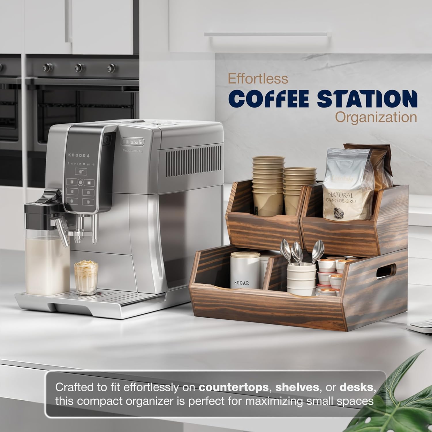 - π Compact Overall Dimensions with Flexible Compartments: The storage bin measures 14" L x 12.5" W x 10" H in total, providing generous space for all your kitchen or pantry needs. Each smaller box measures 7" L x 6" W x 5" H, perfect for sorting and storing fruits, vegetables, or coffee supplies with ease.