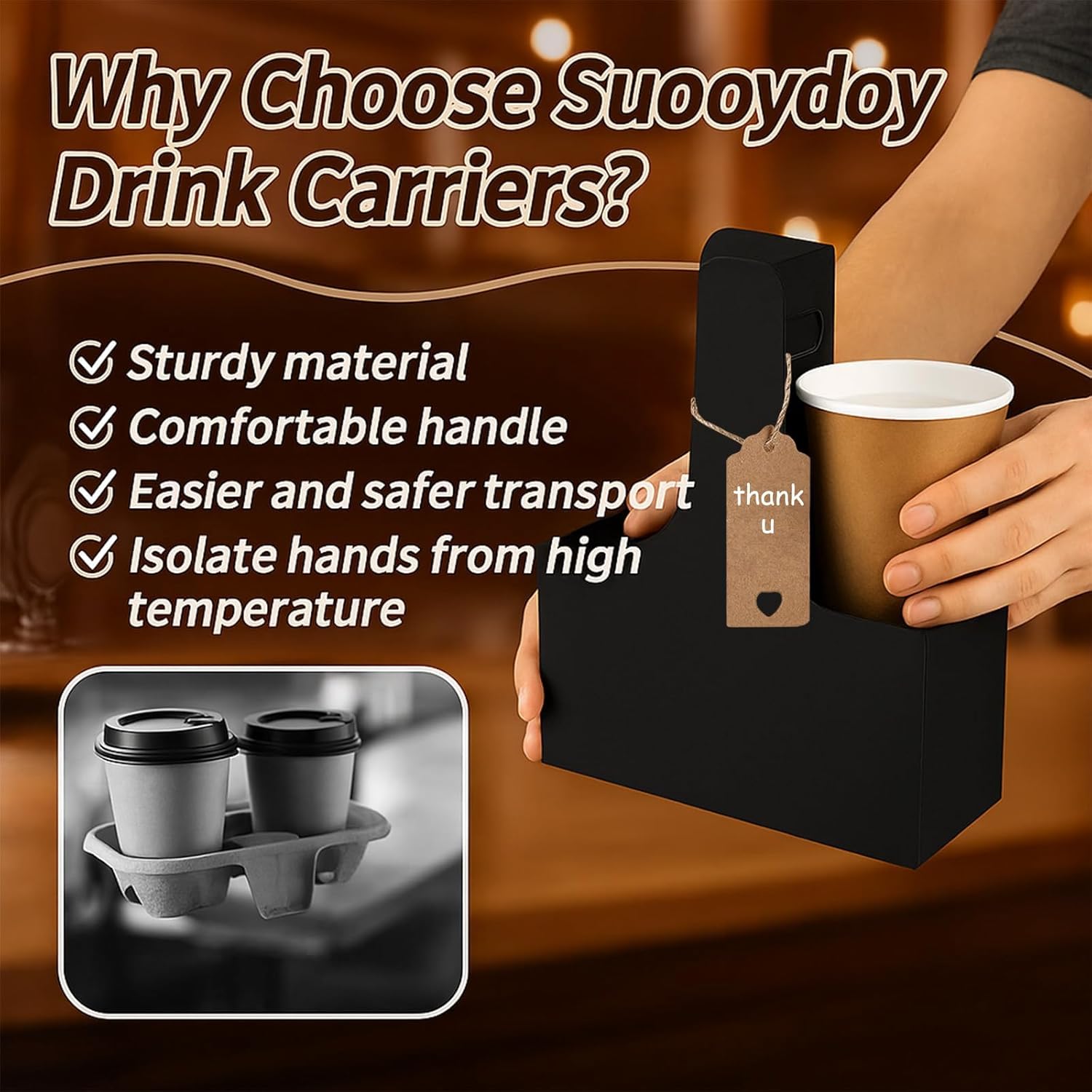 - Sufficient quantity: Our coffee holder package contains a total of 30 black cardboard two-cup drink holders, and also comes with love cards and rope. You can write their message or wishes on the card and place them on the paper cup holder with the rope. It is suitable for Teacher Appreciation Week and Mother's Day, Valentine's Day and other festivals