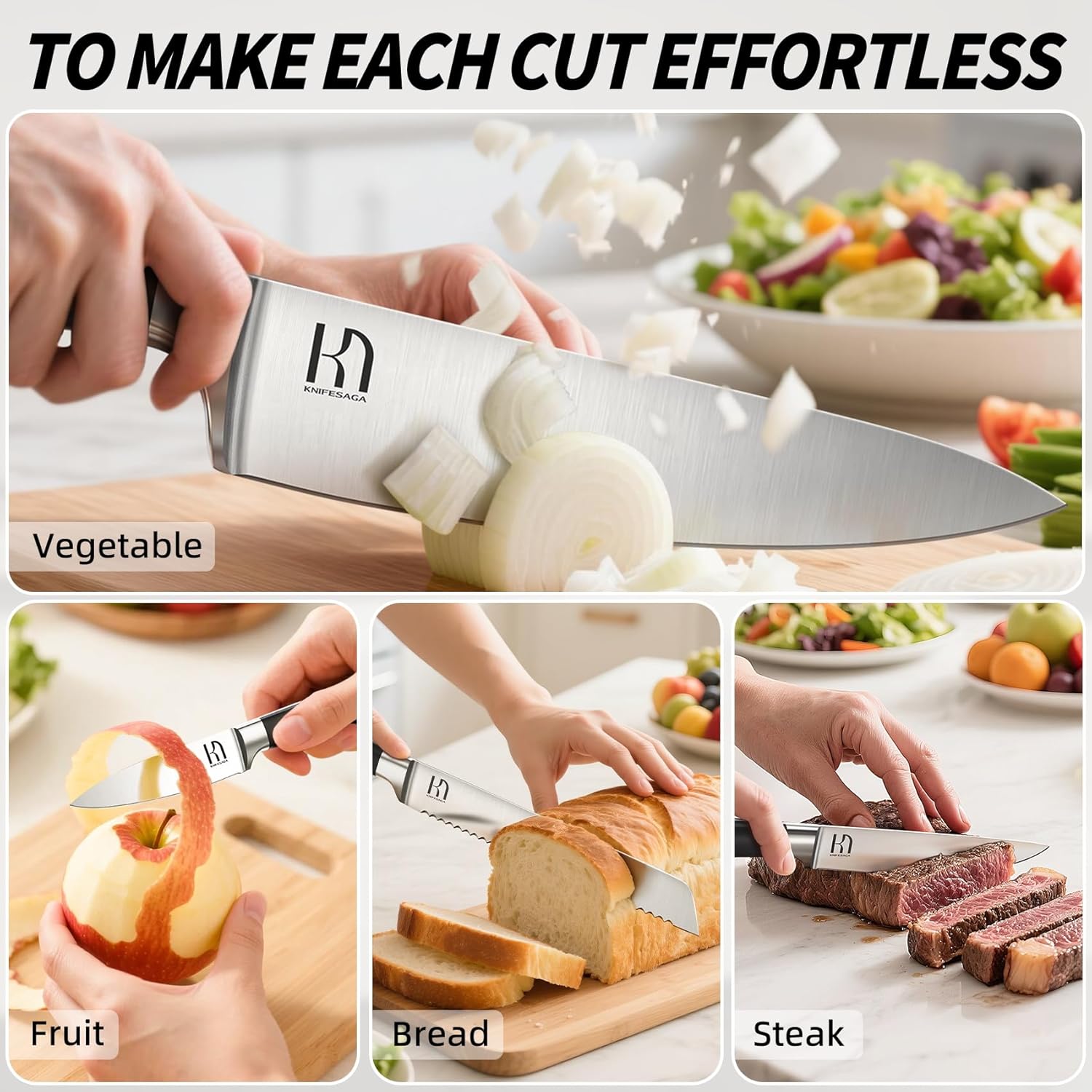- Peace of Mind with Lifetime Service: Enjoy a 100-day hassle-free return and lifetime service assurance. KnifeSaga is more than a knife set—it's a lasting culinary companion.