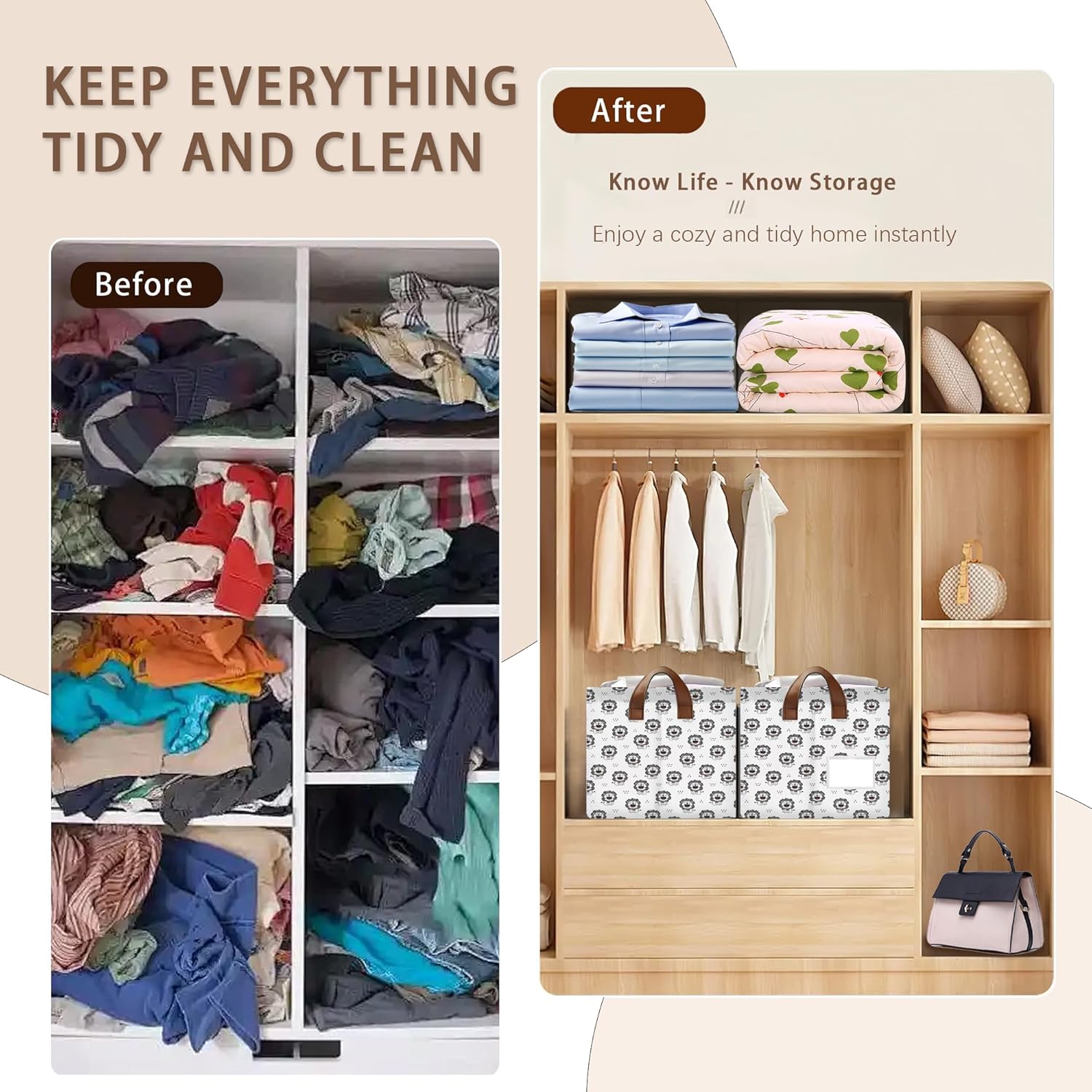 - Conveniently Within Reach: Mogifedc Cute lion Basket Comes With Leather Handles For Easy Transport. Each Handle Is Reinforced And Secured To The Basket With Extra-Strong Stitching,So The Basket Can Withstand Heavy Loads. Each Of These Soft Handles Ensures a Comfortable Grip,Making Housework a Breeze.