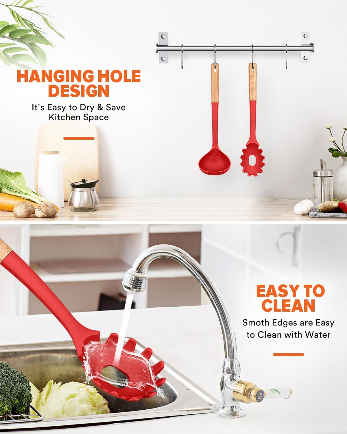 - Stylish & Functional: Modern hues blend with any kitchen; serrated edge lifts noodles/pasta easily; deep bowl ladle securely holds soups