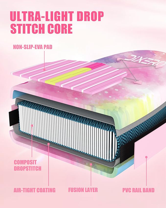 • 【𝗨𝗽 𝘁𝗼 400 𝗟𝗕𝗦 & 𝗠𝗼𝗿𝗲 𝗕𝗮𝗹𝗮𝗻𝗰𝗲 𝗕𝗼𝗮𝗿𝗱 𝘄𝗶𝘁𝗵 𝗘𝘅𝘁𝗿𝗮 𝗪𝗶𝗱𝗲 𝟯3", 𝟮 𝗥𝗶𝗱𝗲𝗿 𝗙𝗿𝗶𝗲𝗻𝗱𝗹𝘆】Dixero runeed series inflatable stand up paddle board for adults is 1 or 2 inches wider than other inflatable sup board, up to 400 lbs weight capacity make it more suitable for 2 person paddle board, so you can take your family or pets together. The extra-wide design balance fishing paddle board creates an incredible stable experience for all skill levels