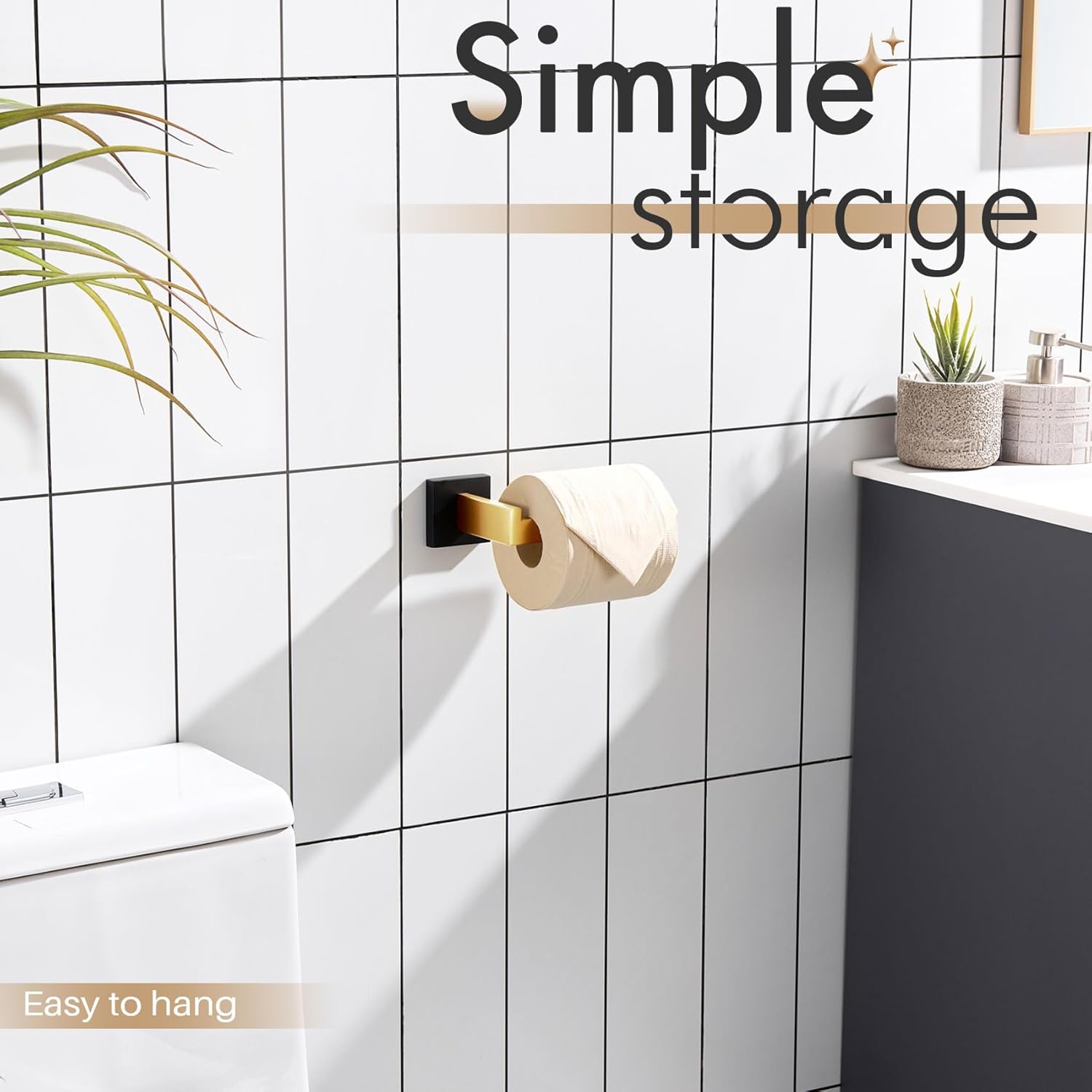 KOKOSIRI Toilet Paper Holders Wall Mounted Toilet Roll Holder for Bathrooms Hardware Washroom T-304 Stainless Steel, Matte Black and Gold B2003GDK