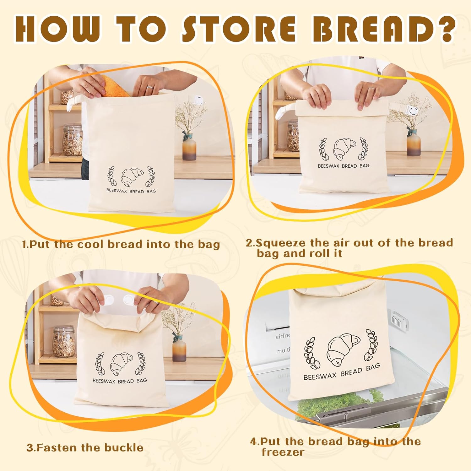 - Multi-Use Beeswax Bread Bags for Grocery & Storage: Carry fresh bread from bakery to home, then store in fridge/freezer – all in one bag! Adjustable buckle secures loaves up to 3lbs