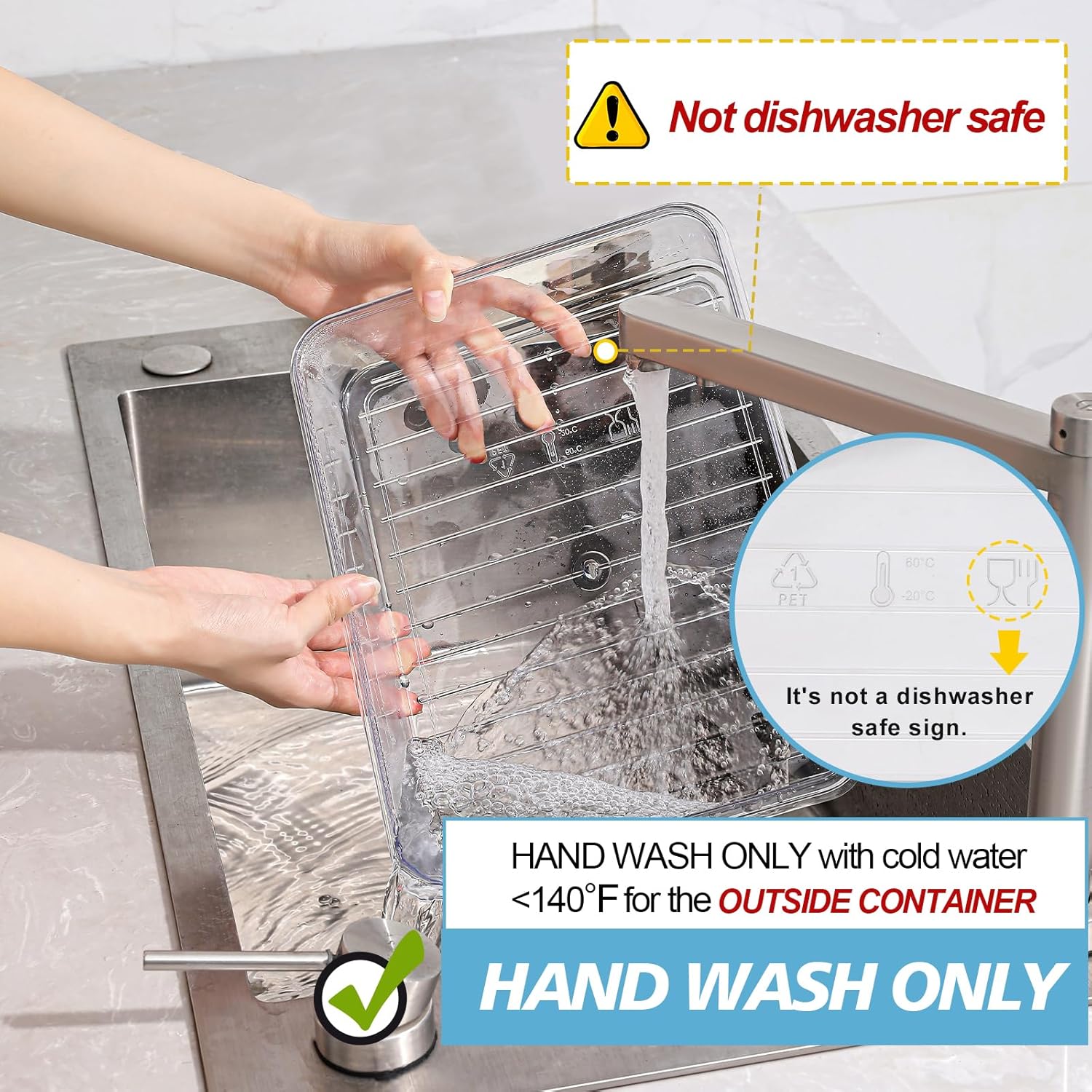 - NOTE: ONLY INNER DIVIDERS ARE DISHWASHER SAFE. The outer container and lid need hand wash with water below 60 ° C( 140℉).