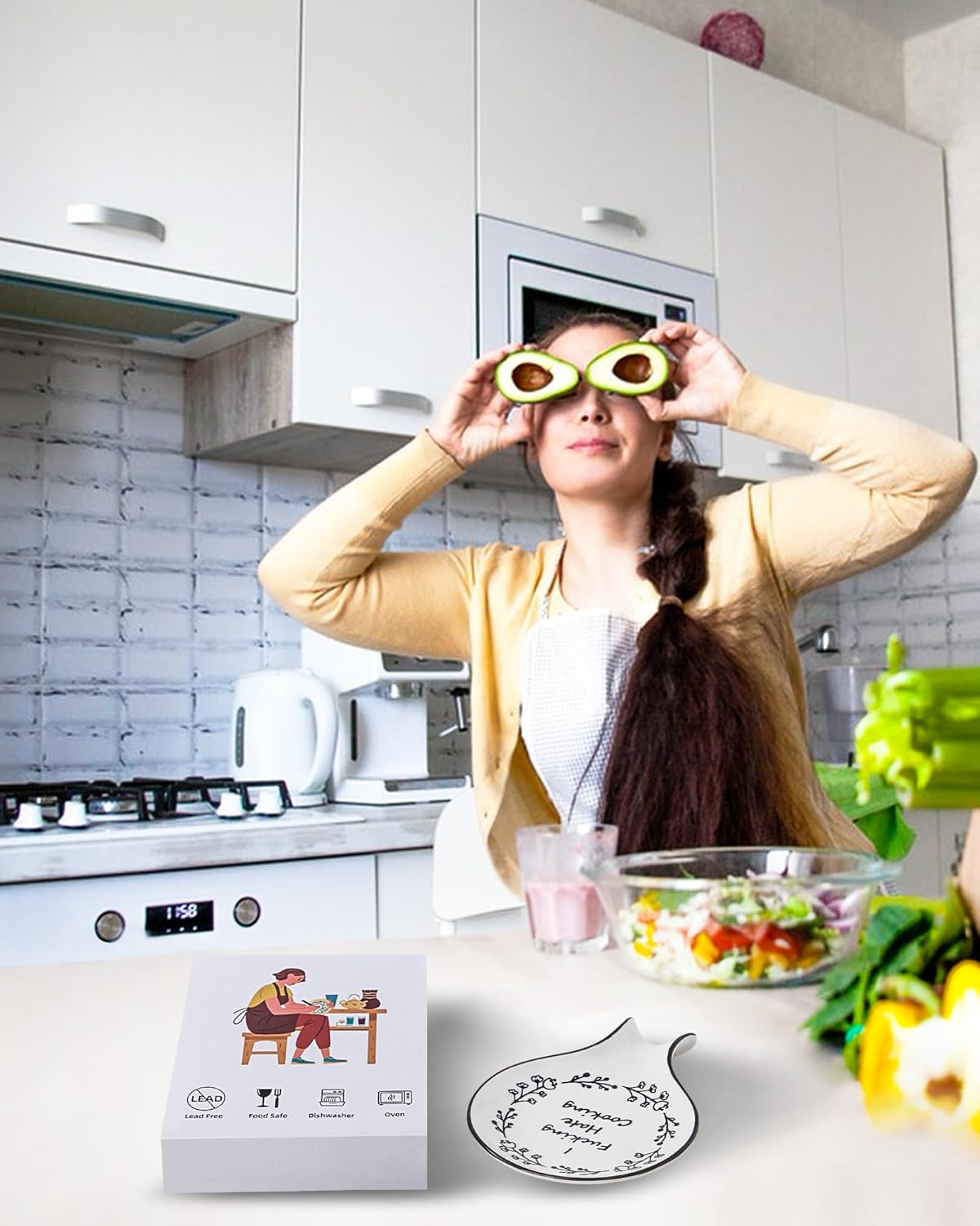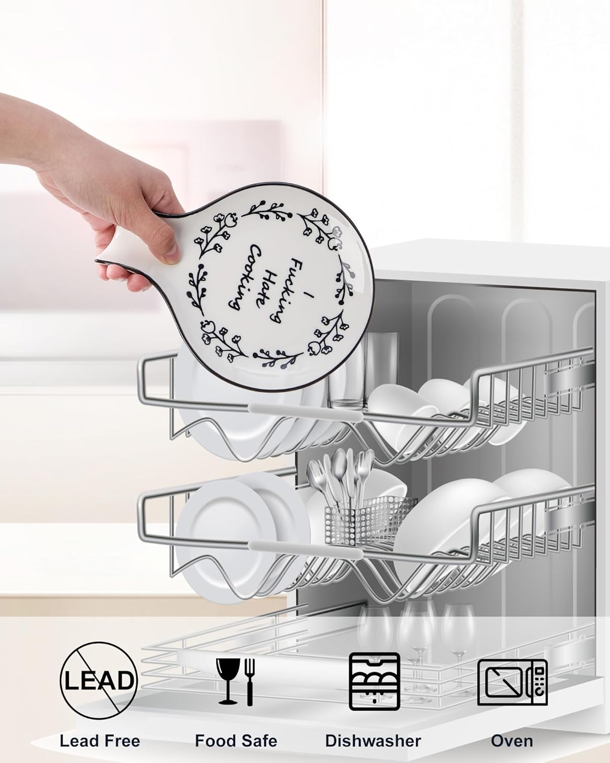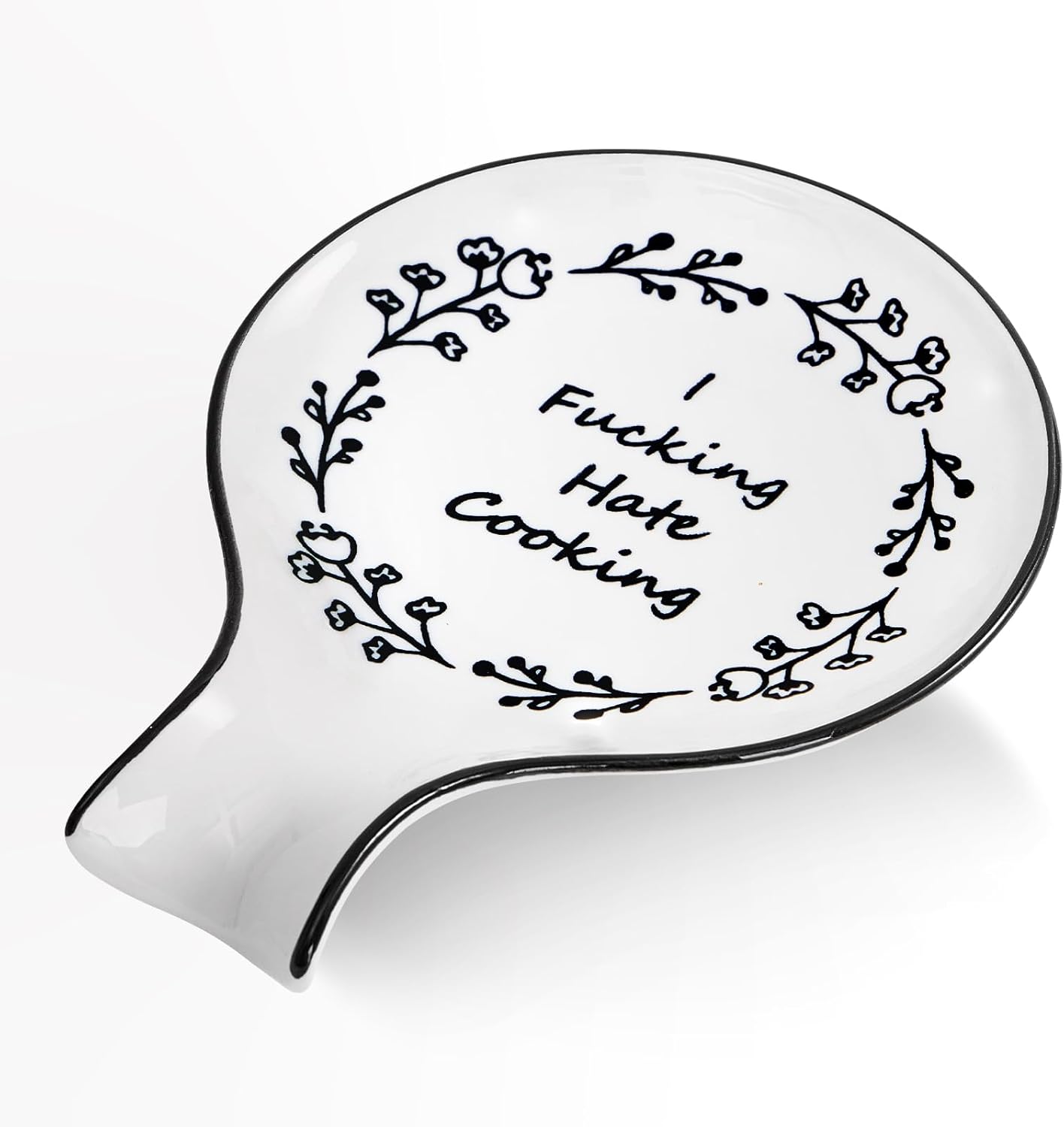 - CUTE and PRACTICAL: This spoon rest has a concise design with interesting words. While helping you keep your countertop clean and tidy, this spoon rest will also bring some fun to your kitchen.Whether you use the spoon rest on kitchen countertops, stovetops, dining tables, or coffee stations, it can be a good match and decorate these places