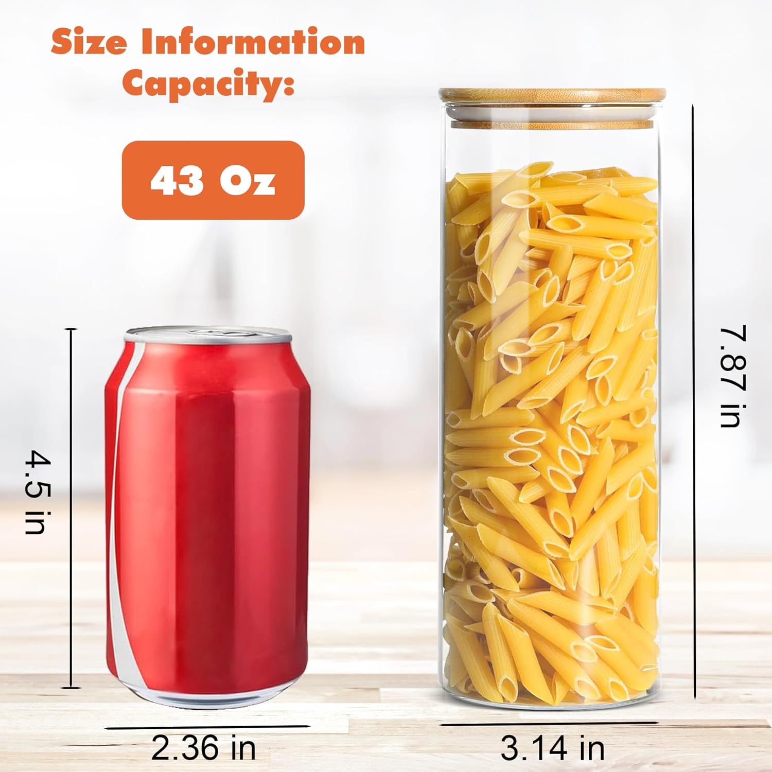 Glass Storage Containers with Airtight Bamboo Lids,Round Glass Jars Pantry Organizers,Perfect for Kitchen Organization - Flour, Rice, Pasta, Sugar, Coffee Beans, Accessories Included (43oz*6)