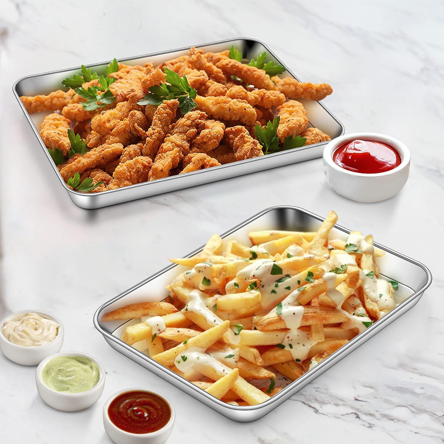 - Premium materials, small baking sheet is well made by pure stainless steel without any chemical coating, healthy and safe for daily baking, the great replacement of aluminum pan or nonstick coated pan, rust free for long lasting use, ideal for home kitchen restaurant