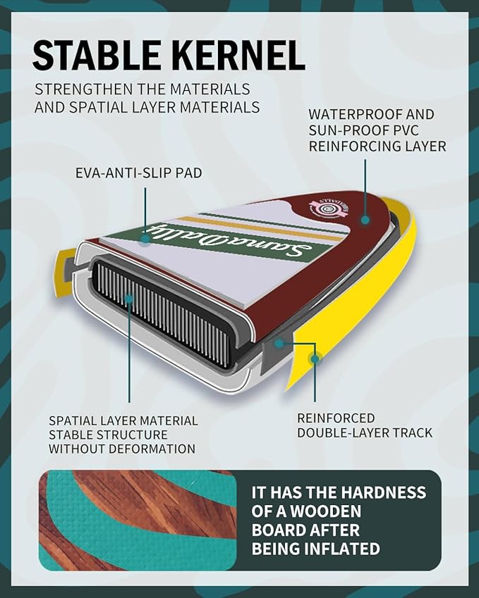 • Spacious & Enjoyable: SamaDally Candy Star series inflatable stand-up paddle boards are 1 to 2 inches wider than other similar products. 34in paddle surface is extremely spacious. Both beginners and paddleboards enthusiasts can find their own water - based fun on this SUP and enjoy a relaxing time.