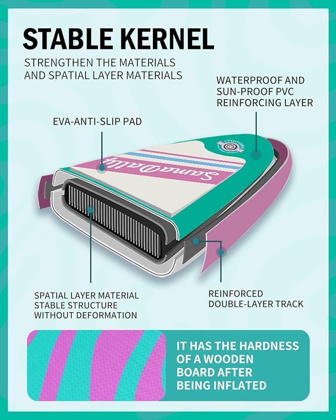 • Spacious & Enjoyable: SamaDally Candy Star series inflatable stand-up paddle boards are 1 to 2 inches wider than other similar products. 34in paddle surface is extremely spacious. Both beginners and paddleboards enthusiasts can find their own water - based fun on this SUP and enjoy a relaxing time.