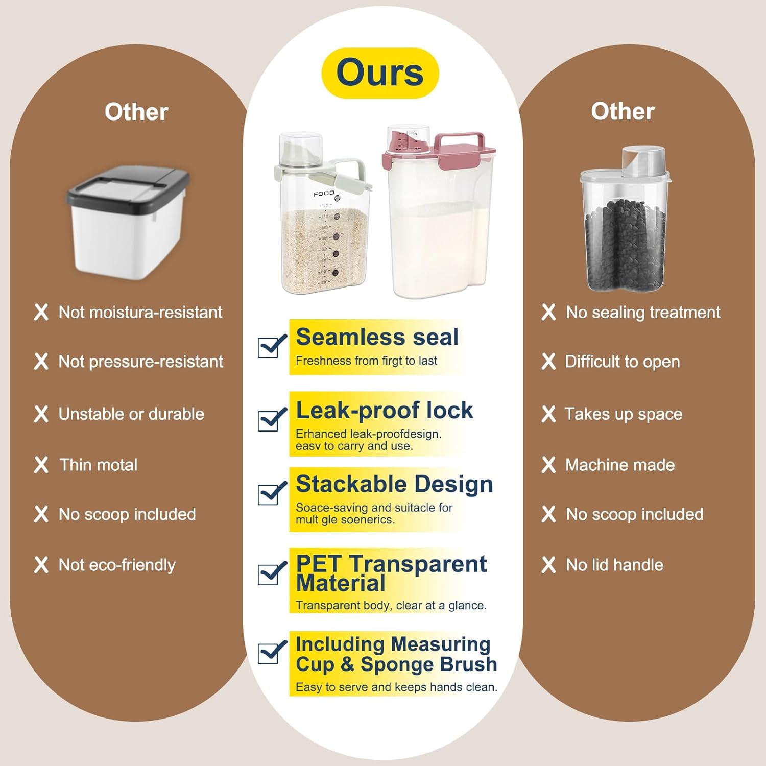 - LARGE CAPACITY:Portable rice airtight storage container capacity of 5 liters, which is very suitable for beans,Cereal,flour, sugar, oatmeal, coffee, rice, nuts, snacks, dog food, cat food, pet food, etc. (Note: The storage capacity of the container varies depending on the size of the food. Pet food can hold 5 pounds, and rice food can hold 5-10 pounds)