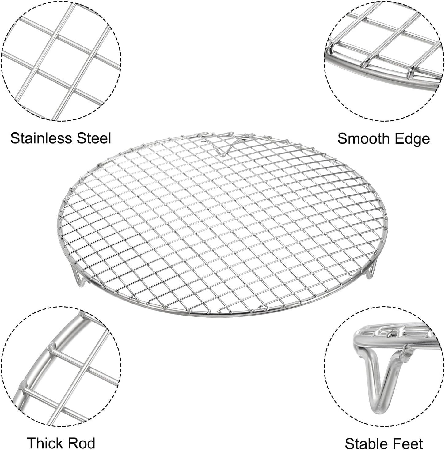 uxcell Round Cooking Rack with Legs, Dia 10.4 Inch 304 Stainless Steel Barbecue Grill for Cooking Baking Barbecue Air Fryer Racks, Silver