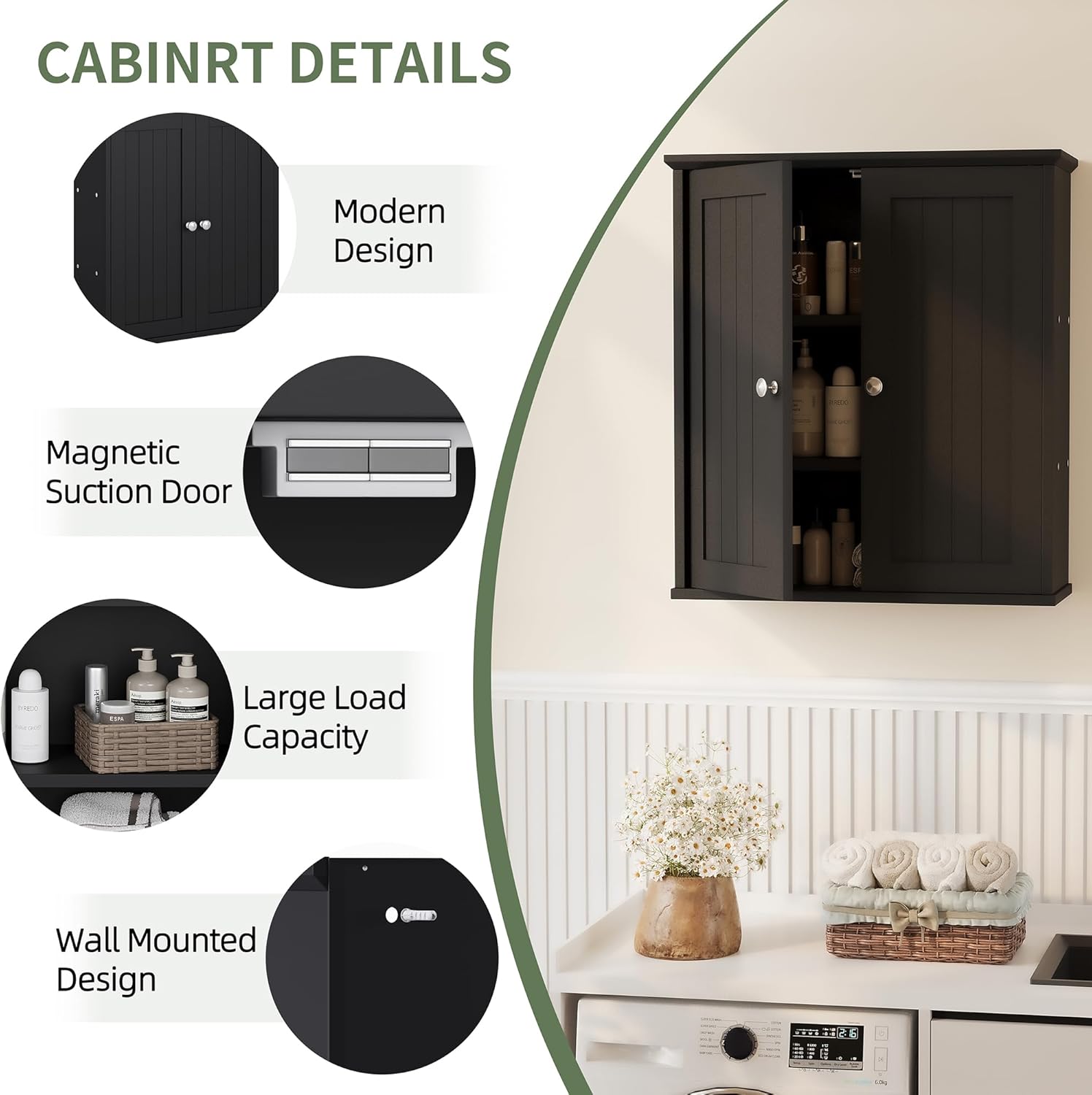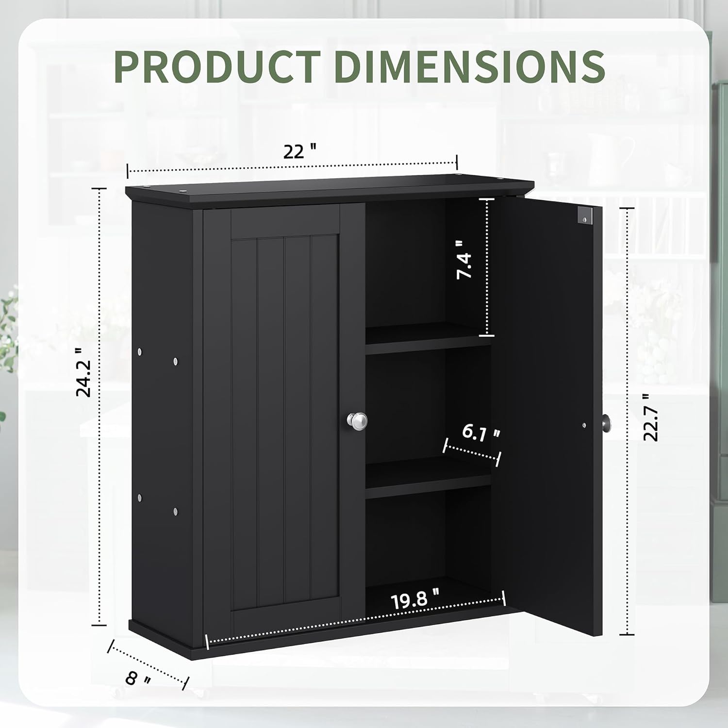 Meilocar Bathroom Wall Cabinet, Bathroom Cabinet Wall Mount, Over Toilet Space Saver Storage Cabinet, Wood Medicine Cabinets, Black