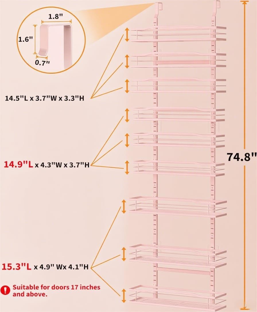 Moforoco Pink 9-Tier Over The Door Pantry Organizer, Pantry Organization and Storage, Black Hanging Basket Wall Spice Rack Seasoning Shelves