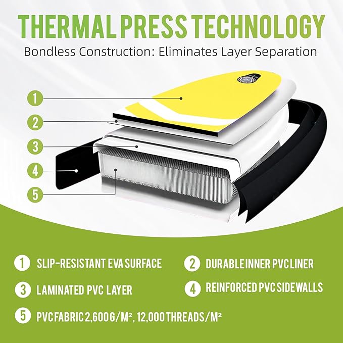 • 【Pro-Level Stability & All-Skill Versatility】Wider 31.5" deck & 6" thick core deliver 30% more rigidity than basic inflatables (tested at 18 PSI). Supports 330 lbs for family lake days or river touring - perfected for beginners through advanced paddlers.