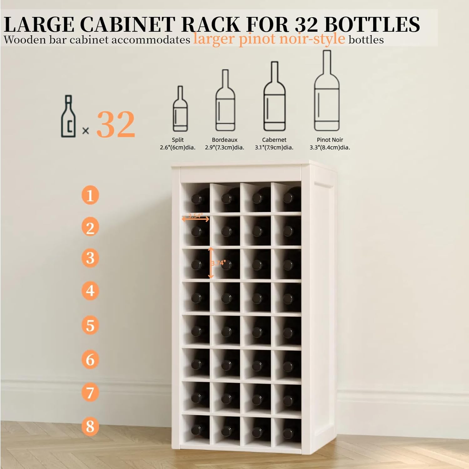 WERSMT 8-Tier Wine Rack Freestanding Floor, 32 Bottles Wood Wine Rack Counter for Small Space, Farmhouse Stackable Modular Wine Bottle Holder Rack, White