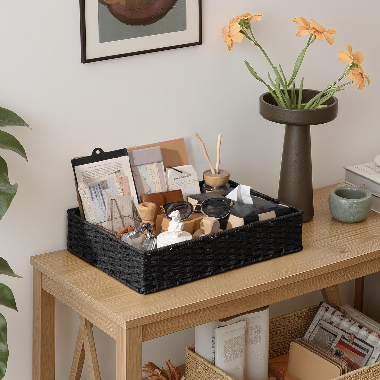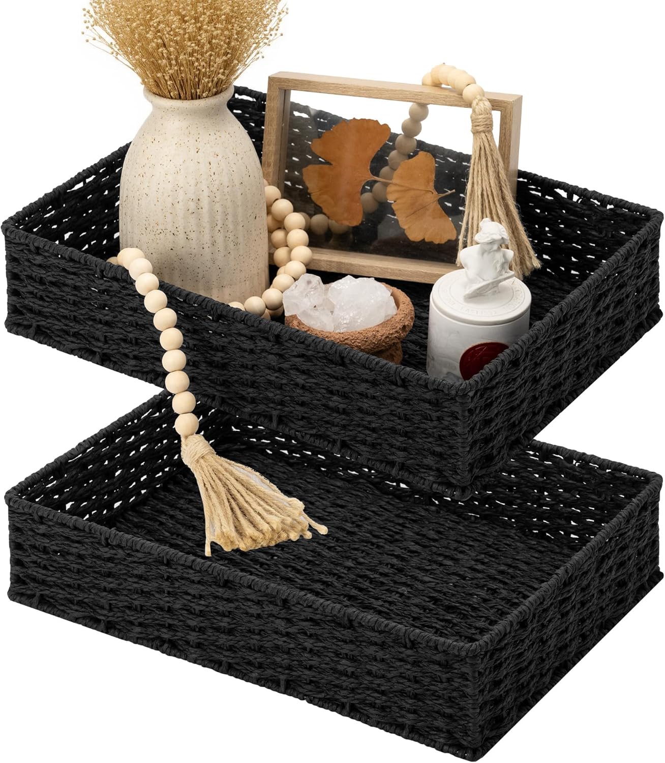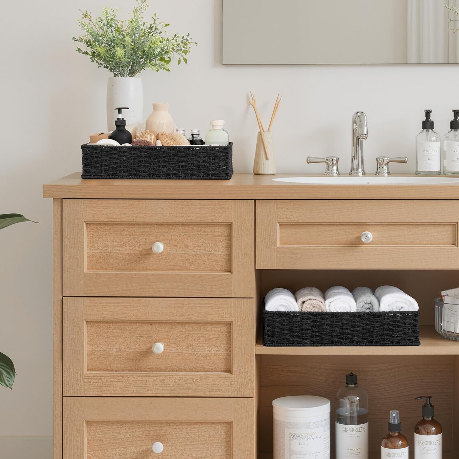 - Handwoven Craftsmanship: Each bathroom tray is expertly woven by skilled artisans, with uniform weaves that provide a delicate texture, adding warmth and style to your storage.
