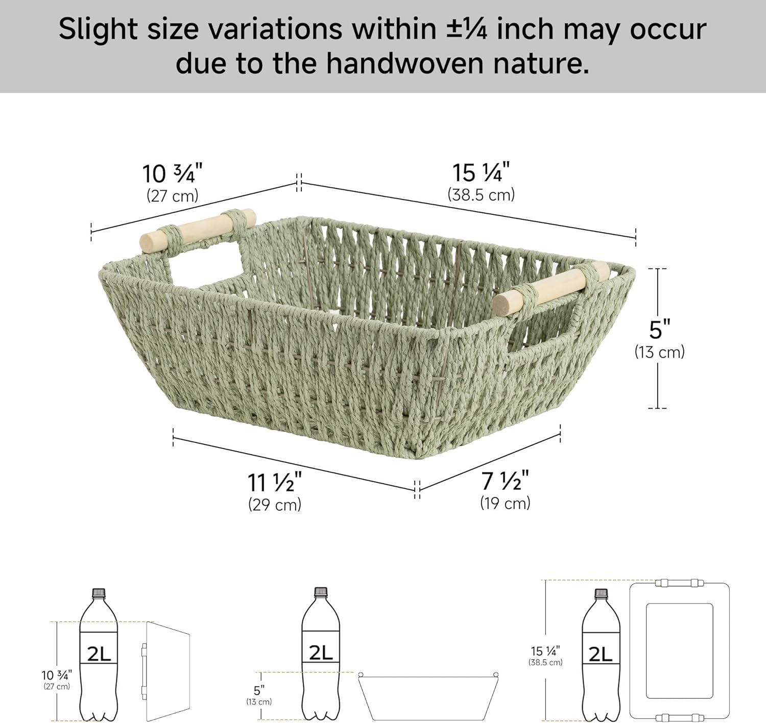 StorageWorks Large Wicker Storage Basket for Organizing with Wooden Handles, Toilet Paper Baskets for Bathroom, Bosana Green, 2-Pack