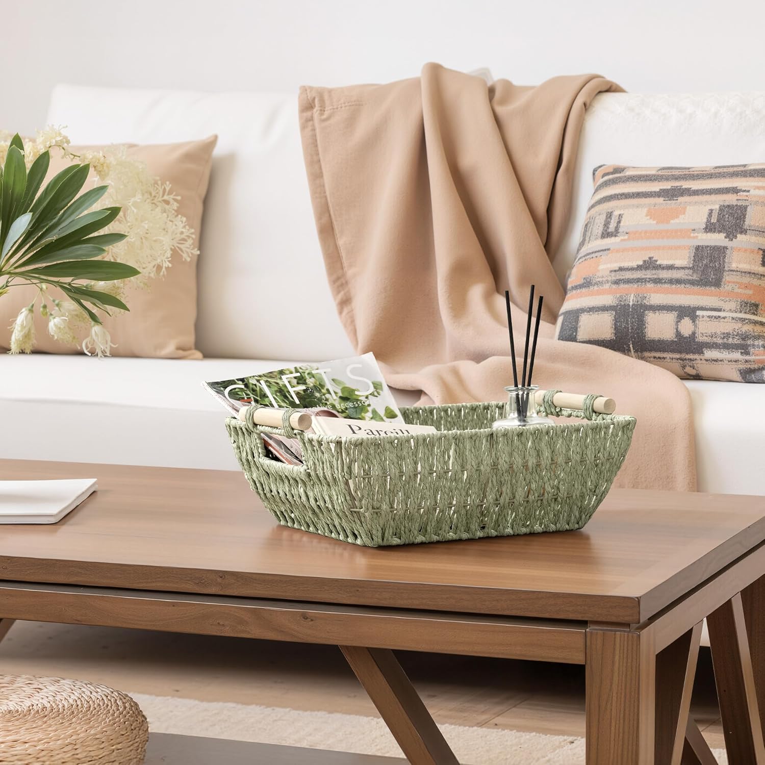 - Decorative Baskets: With its minimalist design, this woven basket adds warmth and style to any space. Ideal for the living room, bathroom, or bedroom, it keeps your items organized while enhancing your home’s aesthetic.