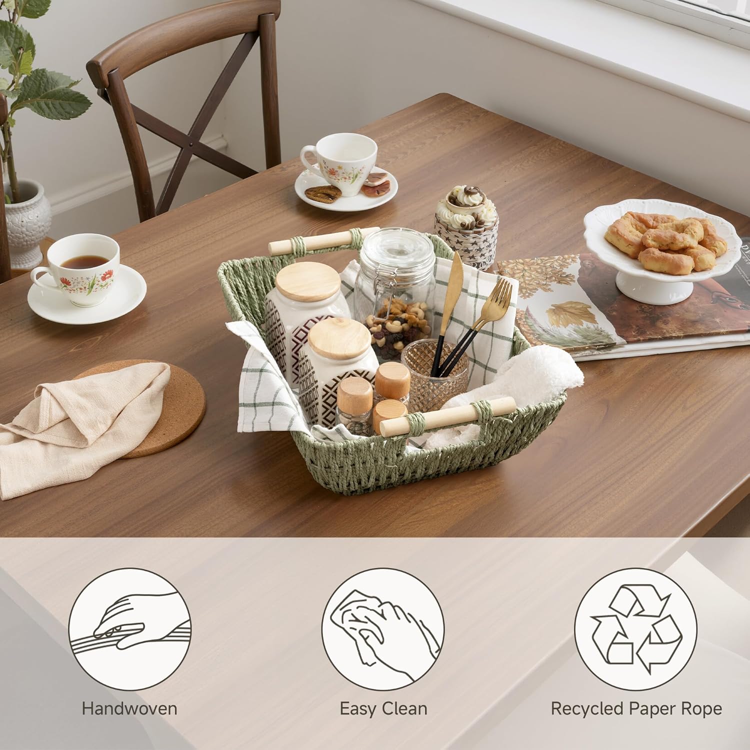 - Recycled Material: Made from durable, recyclable paper rope, designed for long-lasting use and easy recycling, combining storage functionality with a commitment to a low-carbon lifestyle.