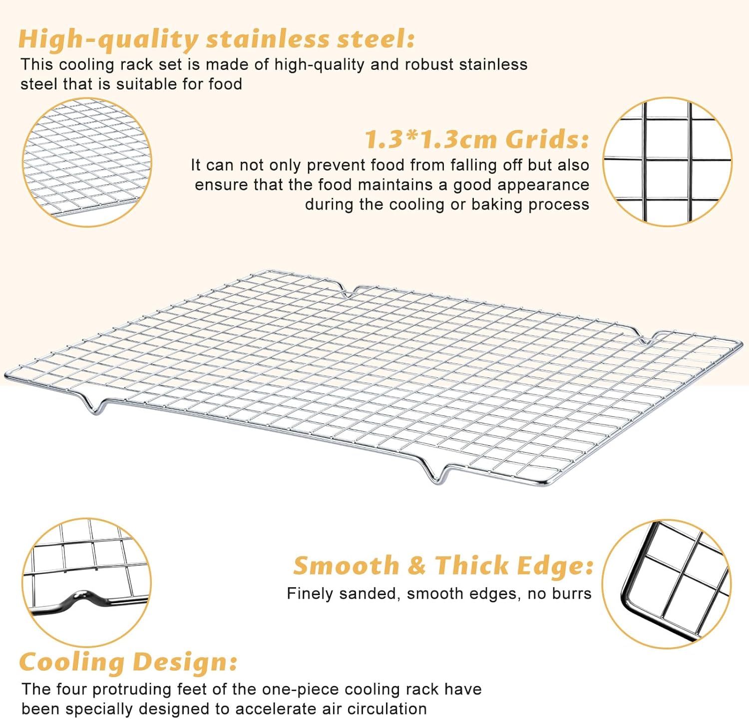 - Multi-Functional Cooling System: Beyond cooling treats, use the racks with baking sheets as a grease-draining duo for crispy wings, roasted meats, or fried foods. Let excess oils drip away for restaurant-quality textures at home.