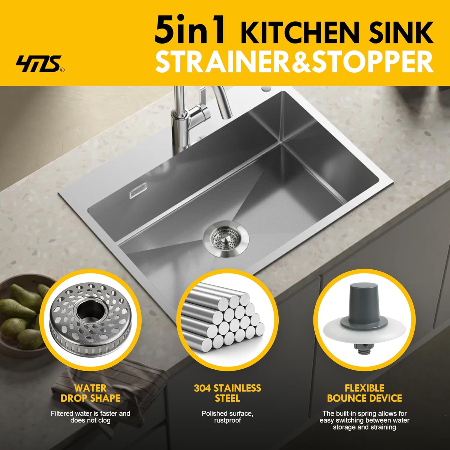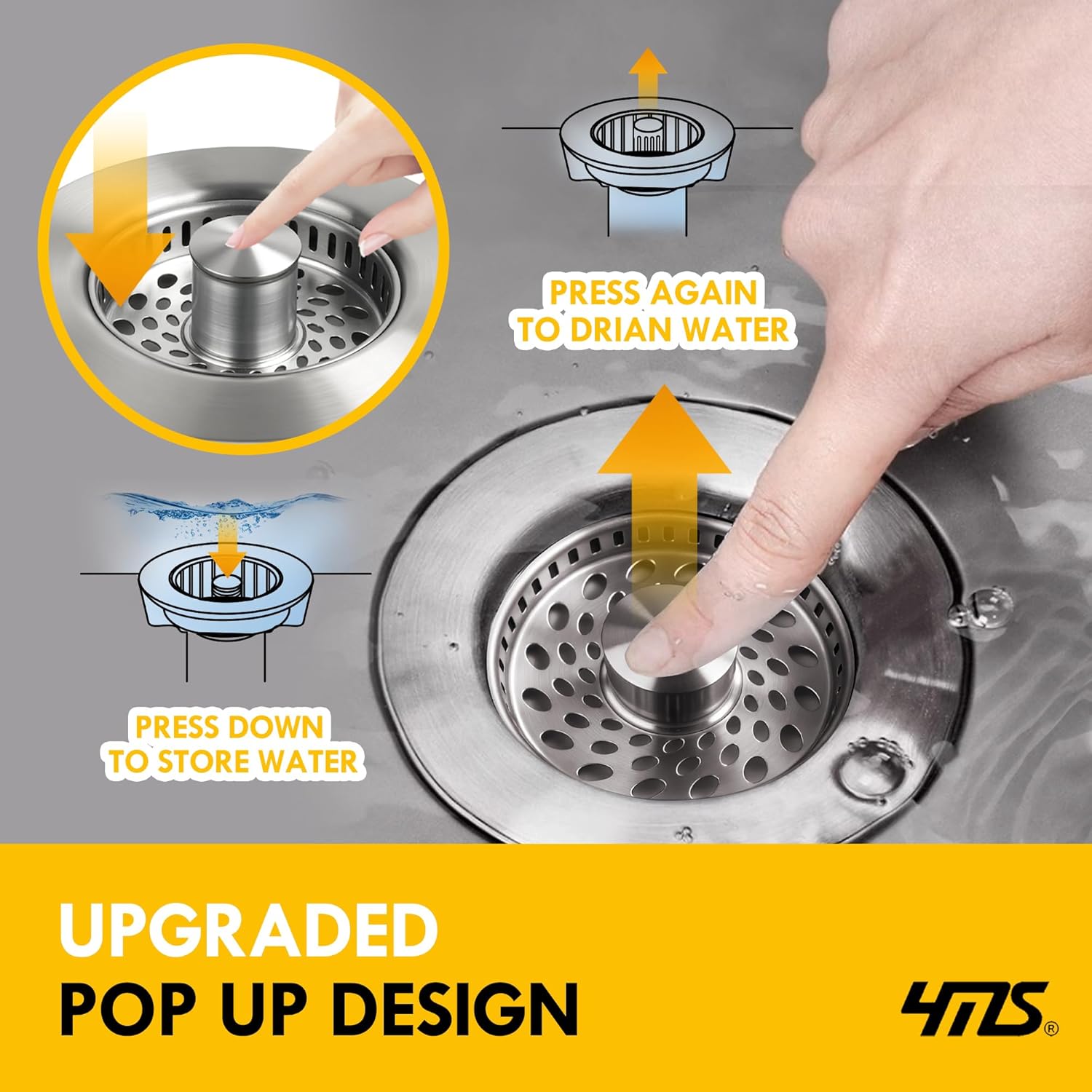 - EASY OPERATION: Pop-up mechanism smoothly transitions between strainer and stopper functions with a simple push