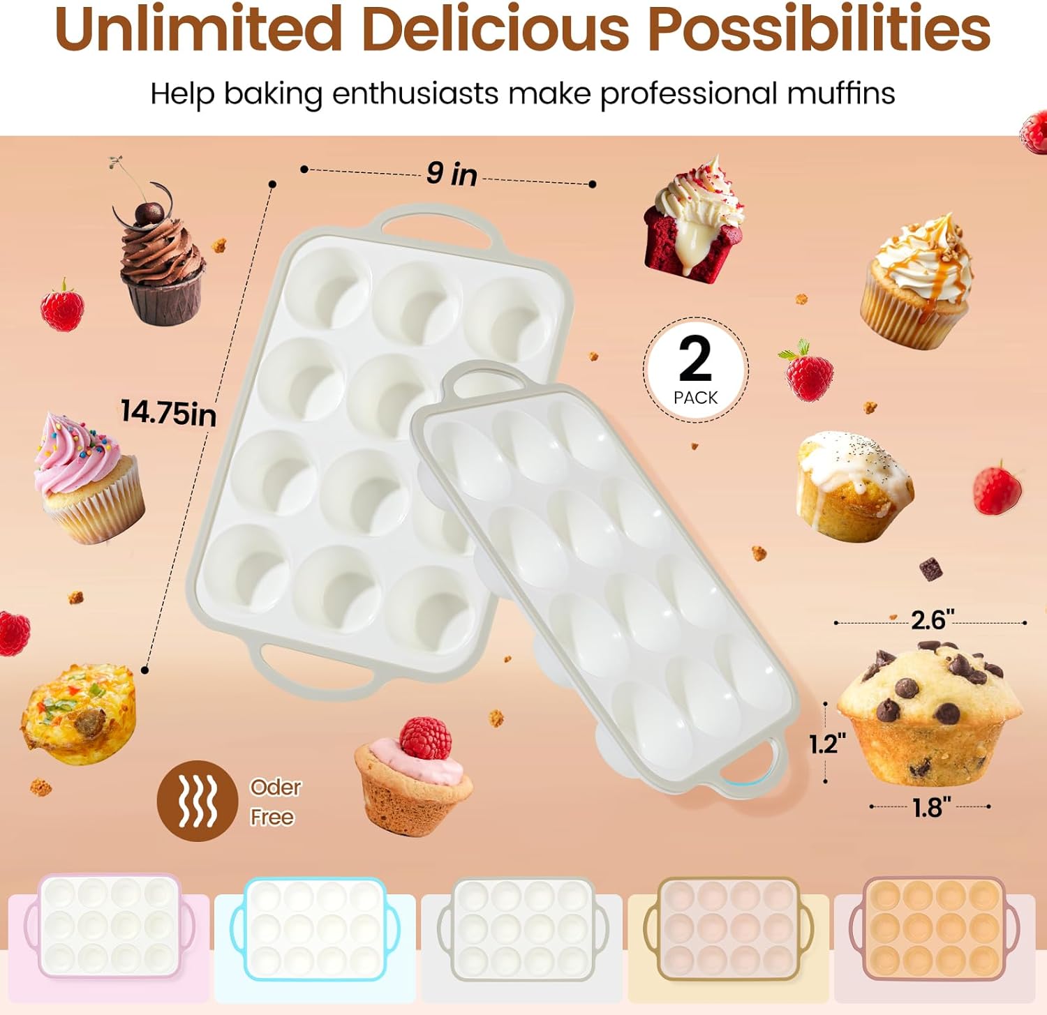 - Non-Stick & Easy to Release - The high-quality silicone material offers a non-stick surface, allowing for easy release of your baked goods without the need for greasing or cooking spray. Enjoy perfect muffins and cupcakes that pop right out.
