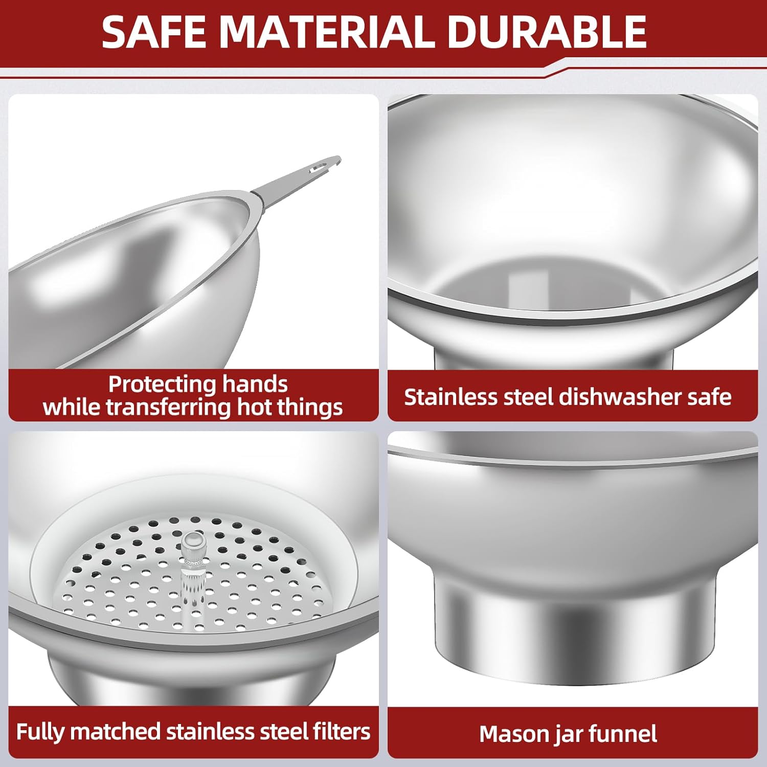 - Canning Funnel with Strainer for Regular Mason Jars - Wide-Mouth Funnels for Kitchen Use - Canning Supplies Kit - Stainless Steel