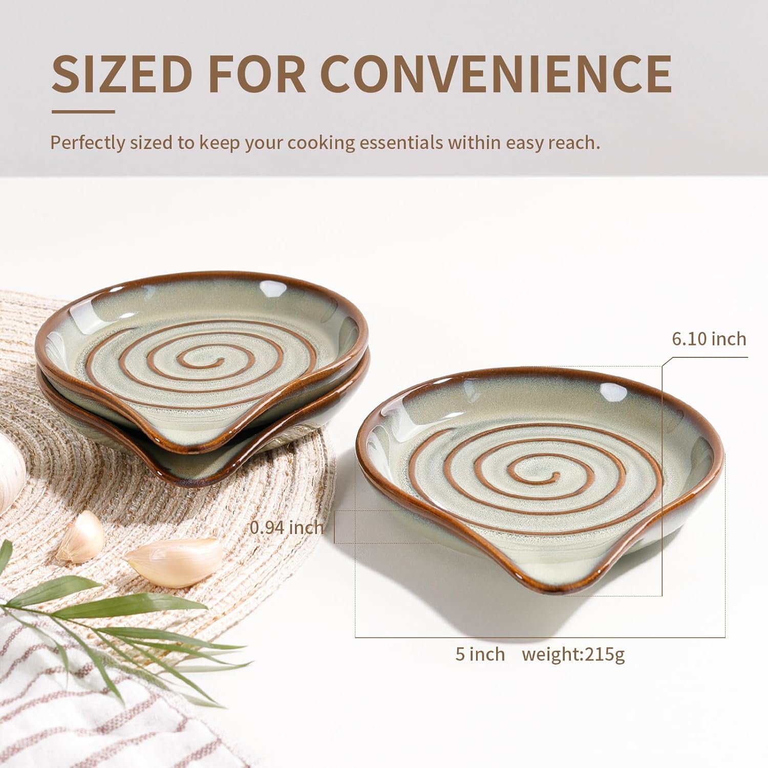 - Crafted for Beauty and Function: Made from food-safe, heat-resistant ceramic, this utensil rest features a swirl center that holds utensils in place while catching drips. The kiln-glazed finish adds a unique touch of style—perfect as a kitchen spoon rest that complements farmhouse, modern, or minimalist décor.