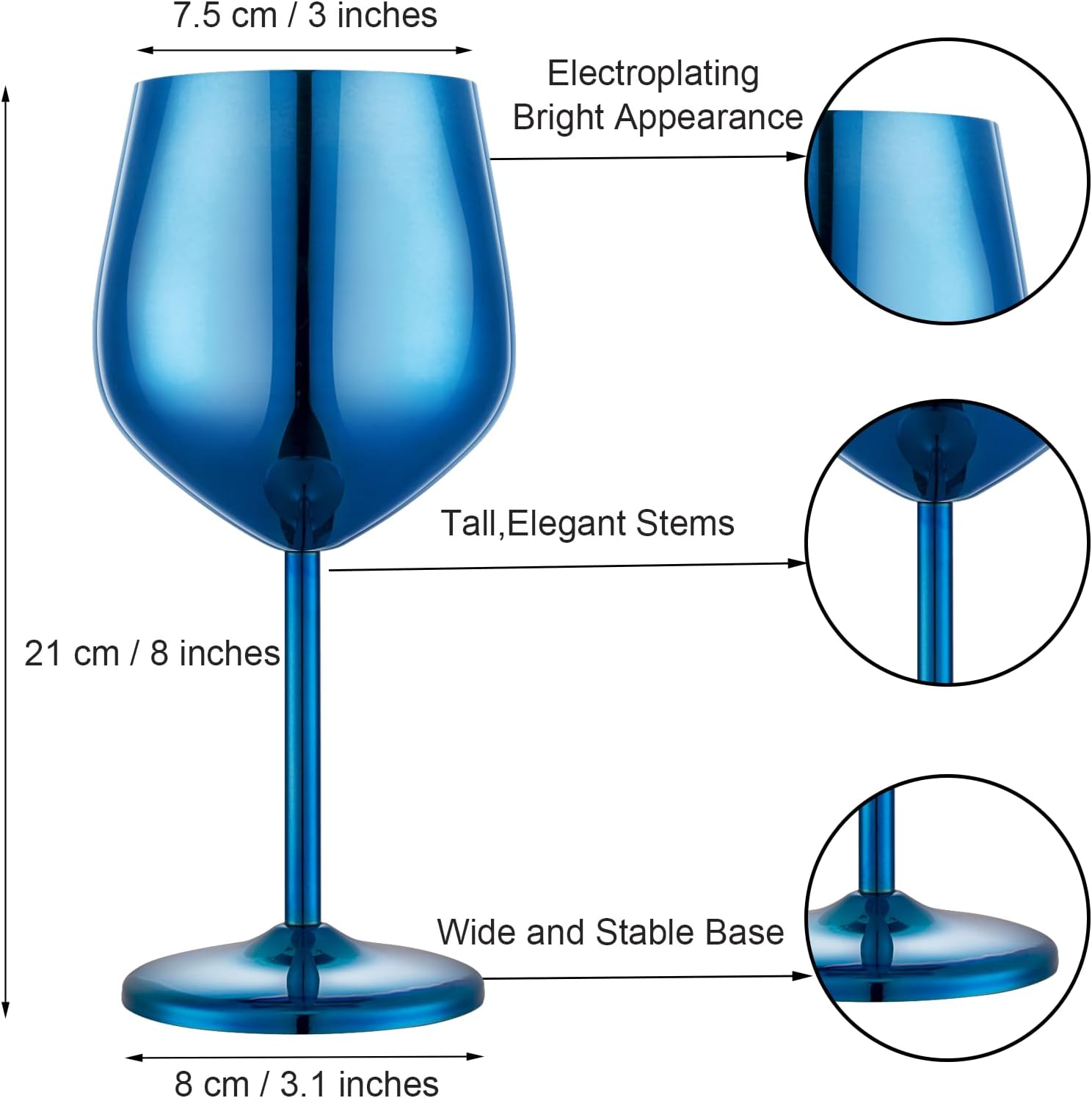 - 【Luxurious & Refined】Hand-polished to perfection, these stainless steel wine glasses feature premium electroplated coloring and a striking metallic finish. With a generous 18-oz capacity and a weighted flat base for superior stability, the sleek stem elevates both elegance and functionality—effortlessly aerate your wine with a graceful swirl