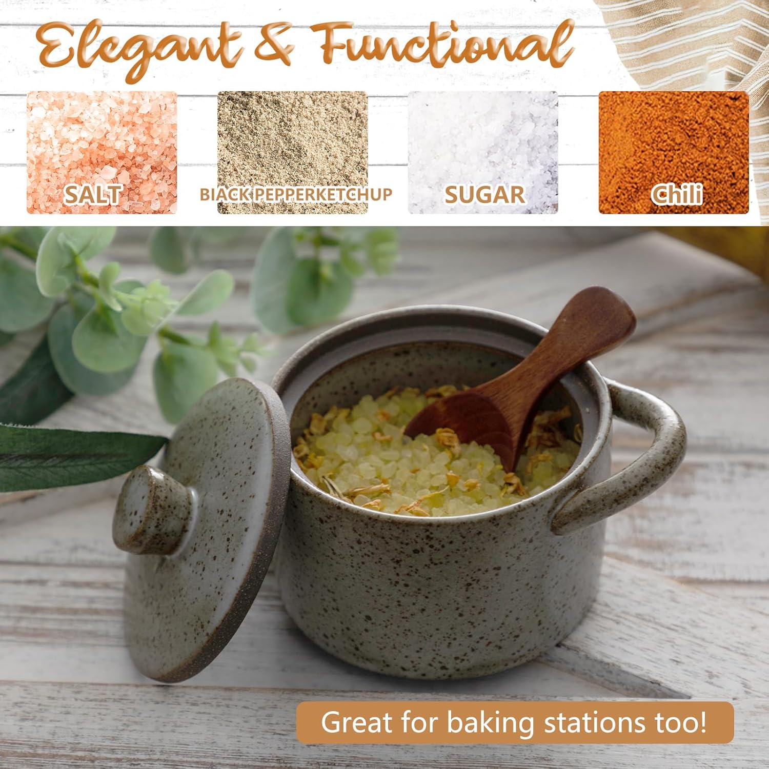- Versatile Culinary Companion: designed for convenience, this salt cellar with lid is ideal for spices, herbs, or even small trinkets; Its compact size, about 3.5 inches, ensures a fit on any countertop, providing easy access while cooking for an enriched culinary experience