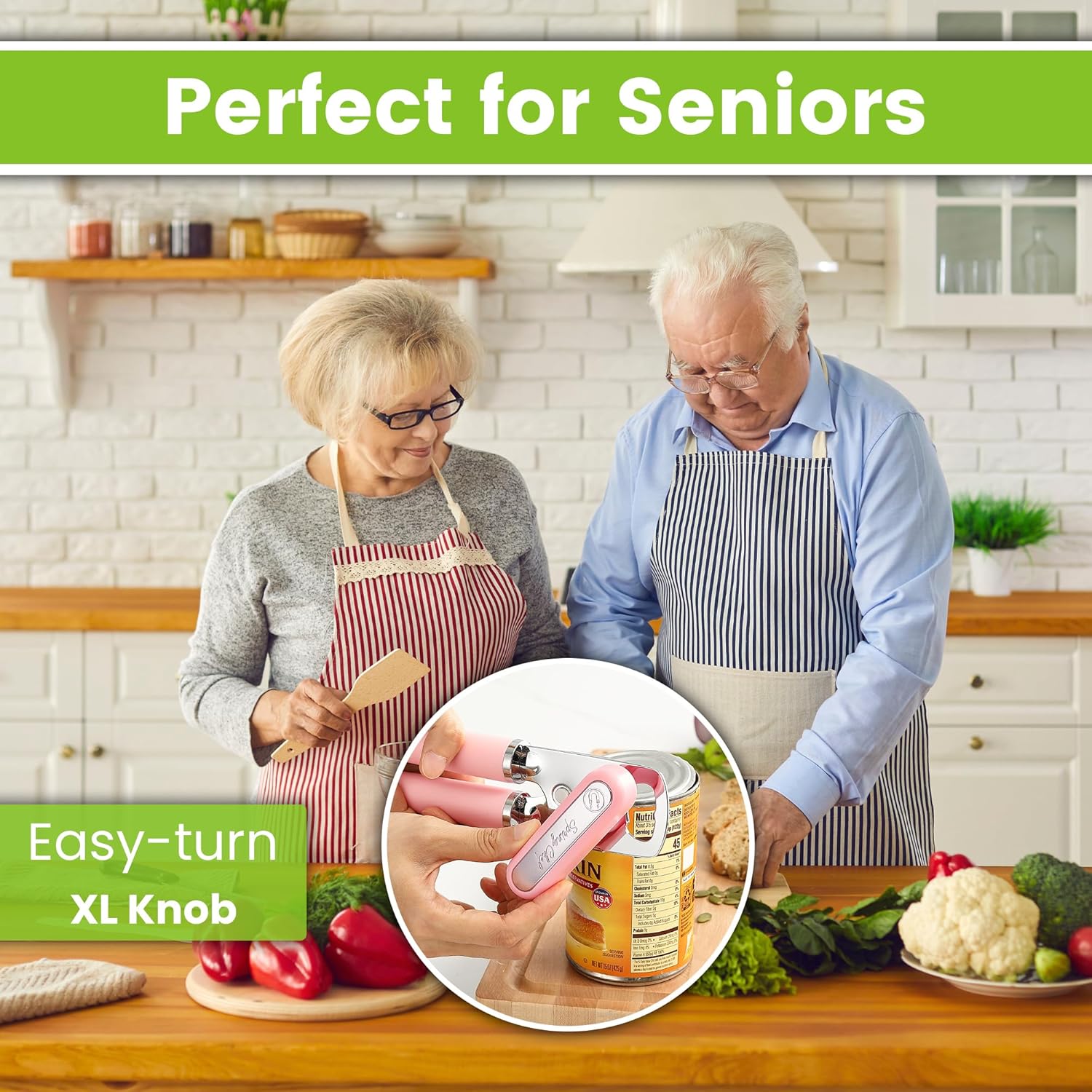Spring Chef Stainless Steel Can Opener - Manual with Soft Grip Handles, Easy Turn, Heavy Duty Hand Can Openers for Seniors with Smooth Edge - Magnetic Lid Remover - Pink Lemonade