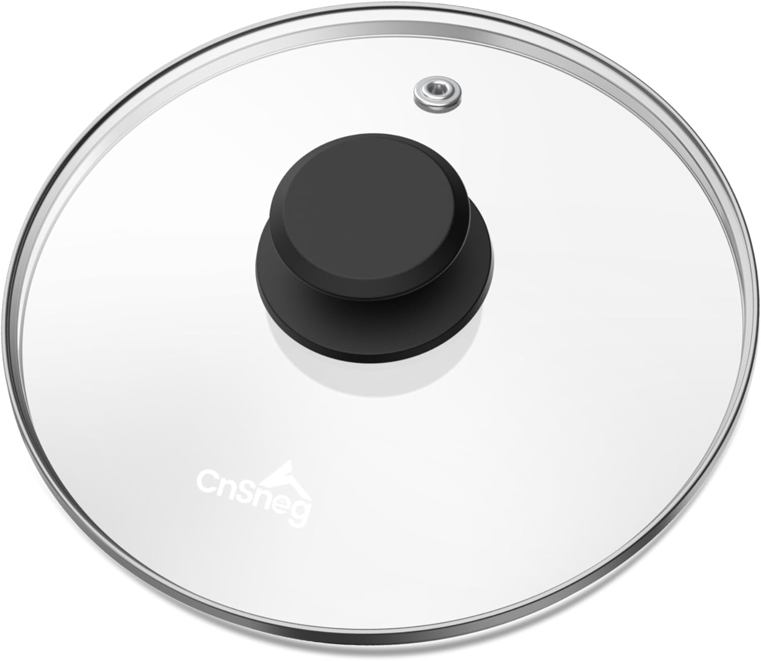 - 8 INCH PAN LIDS: Crafted with HD tempered glass, leak proof SS304 steam vent and heat resistant bakelite knob. The CnSneg glass lid fits most 8 inch diameter cookware of pots, cast iron skillets, wok, saucepan, and frying pans. Dishwasher safe for effortless cleaning.