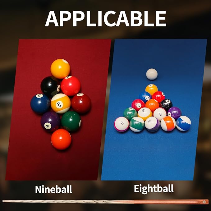 • Precise Power Transmission: The dense and straight pool cue stick enables efficient transfer of power from your stroke to the cue ball. Use the pool cue to get a direct and accurate hit, maximizing the effectiveness of your shots