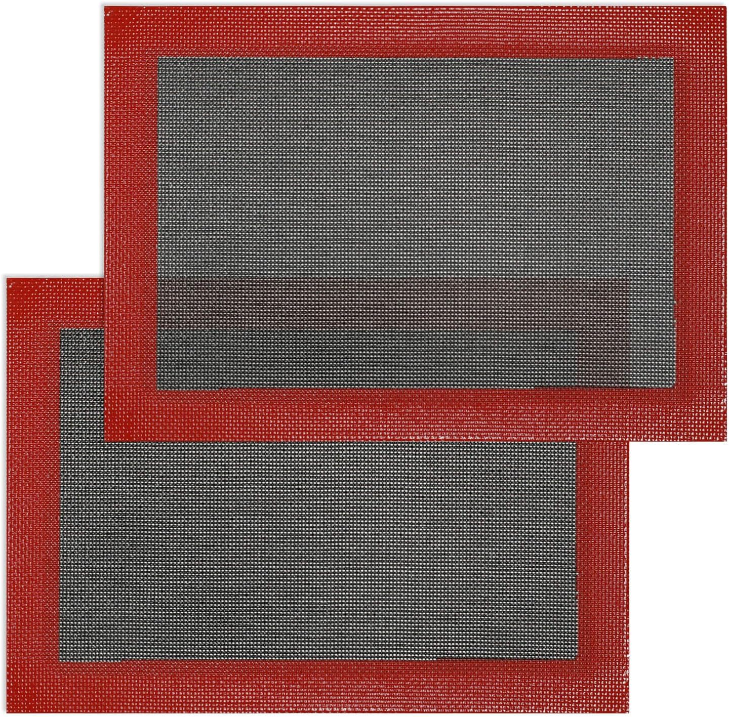 - ✅ 【SILICONE AIR MESH MAT, ELEGANCE & BEAUTY】 Perforated mesh creates evenly browned, golden bottoms with beautiful crisping marks, ensuring your baked creations come out perfectly golden and unmistakable crunch every time. Its sleek black design with red trim adds a refined, professional look to any baking setup, turning every batch into a bakery-worthy creation.
