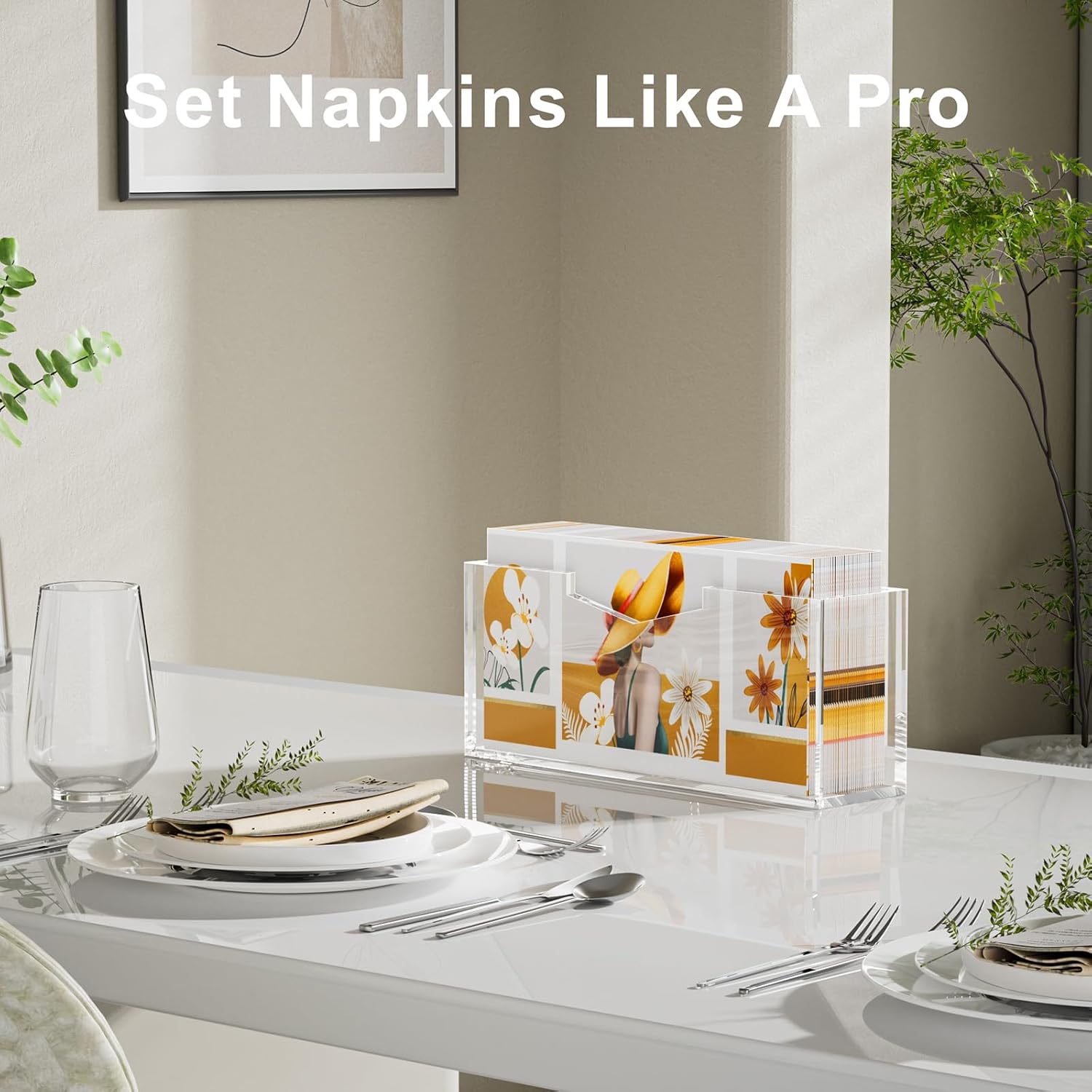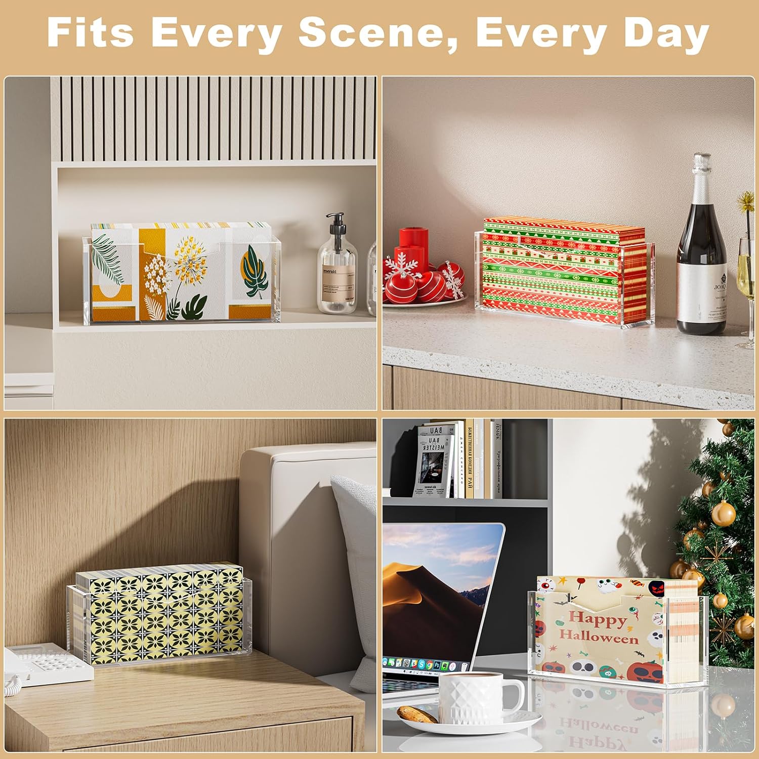 HELPLEX Clear Acrylic Guest Towel & Napkin Holder - Waterproof Splash-Proof Vertical Design for Bathroom, Kitchen, Dining Table - Home Hotel Office Organizer (2-Pack)