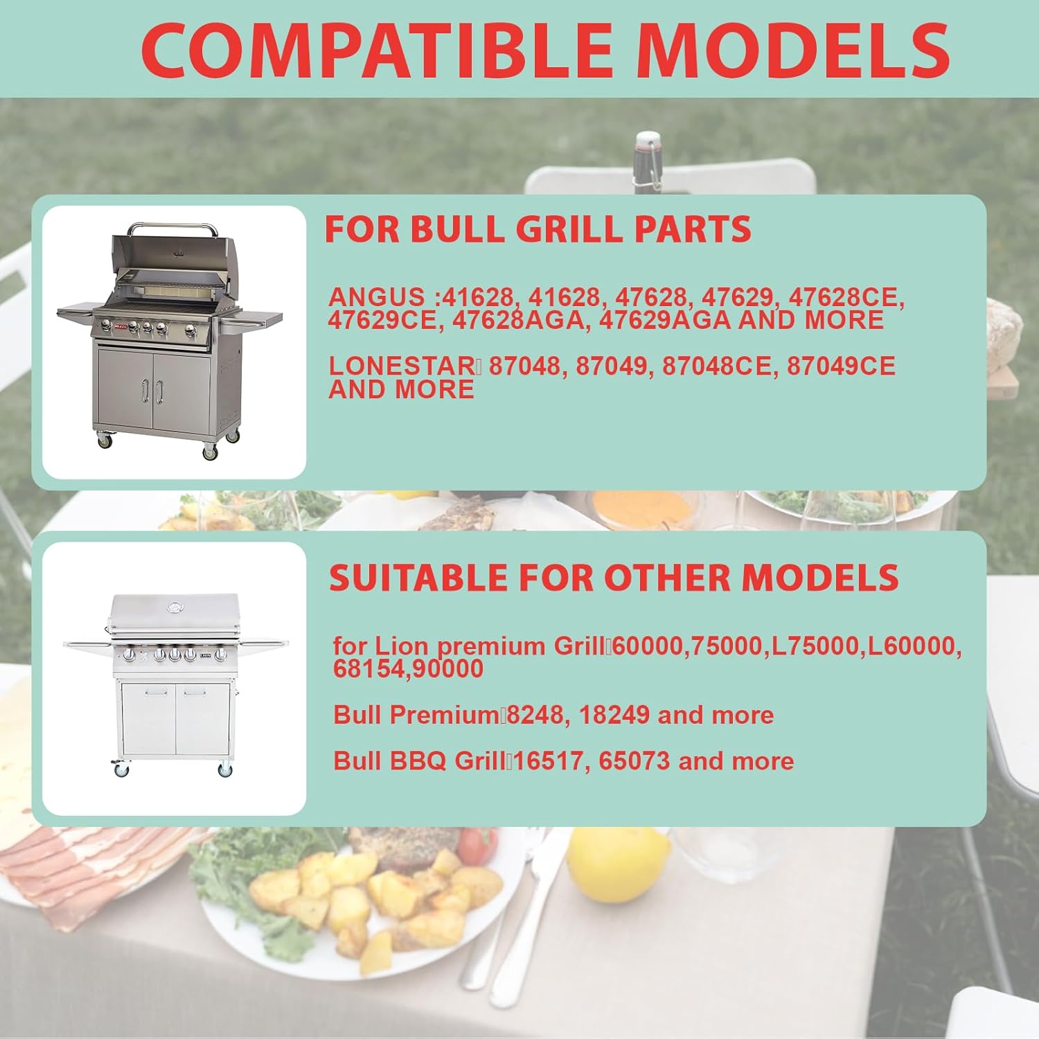 - Compatibility: Designed specifically for Bull Grill 4 Burner 30 & 40 Inch Angus 47628 41628 41629 47628AGA 47629AGA 47629CE 47628CE and more,for Bull Premium Grill 18248 18249 etc., for Bull Outlaw Grill 26039 26039CE 26038 26038CE and more, for Bull Lonestar Grill 87049 87049CE 87048 87048CE and more,compatible with the original Bull part number 16517 65073 and more.