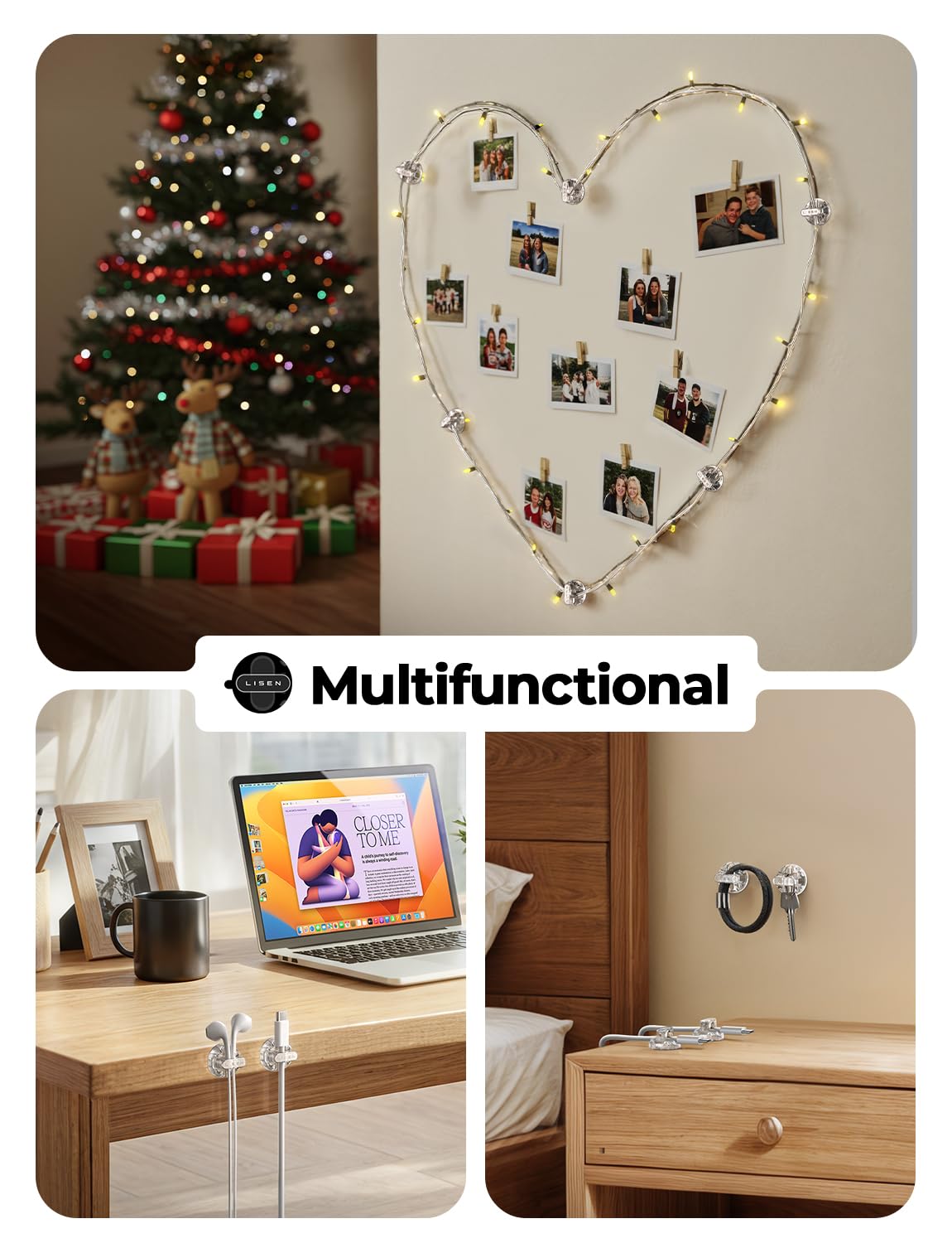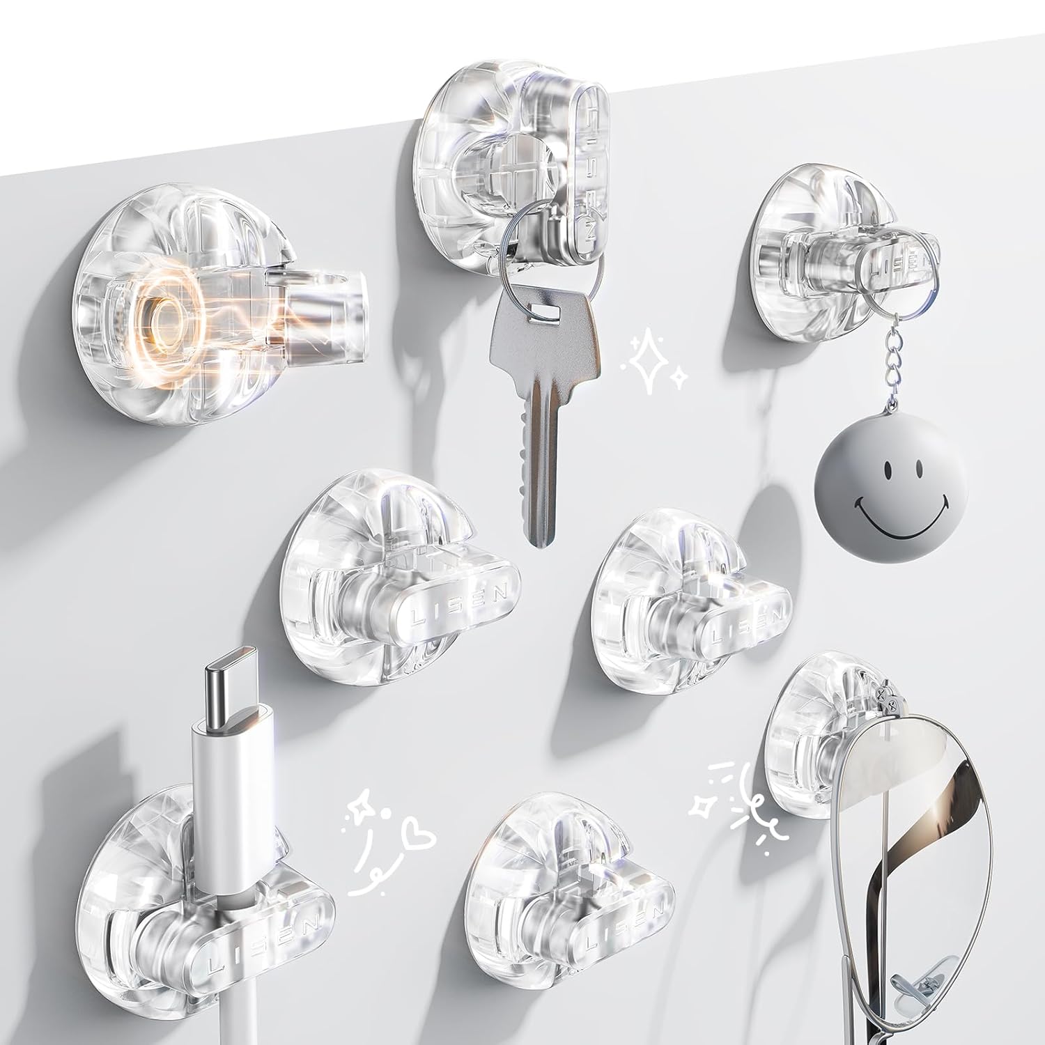 - Compact, Tidy Up Any Space: Measuring just 0.85" x 0.85" x 0.55" and weighing only 3g, LISEN cold holder is perfect for narrow spaces. With 8 individual clips included, you can neatly arrange cables on desks, nightstands, walls, or even in your car. This versatile organizer is a must-have accessory for keeping your space clean and clutter-free