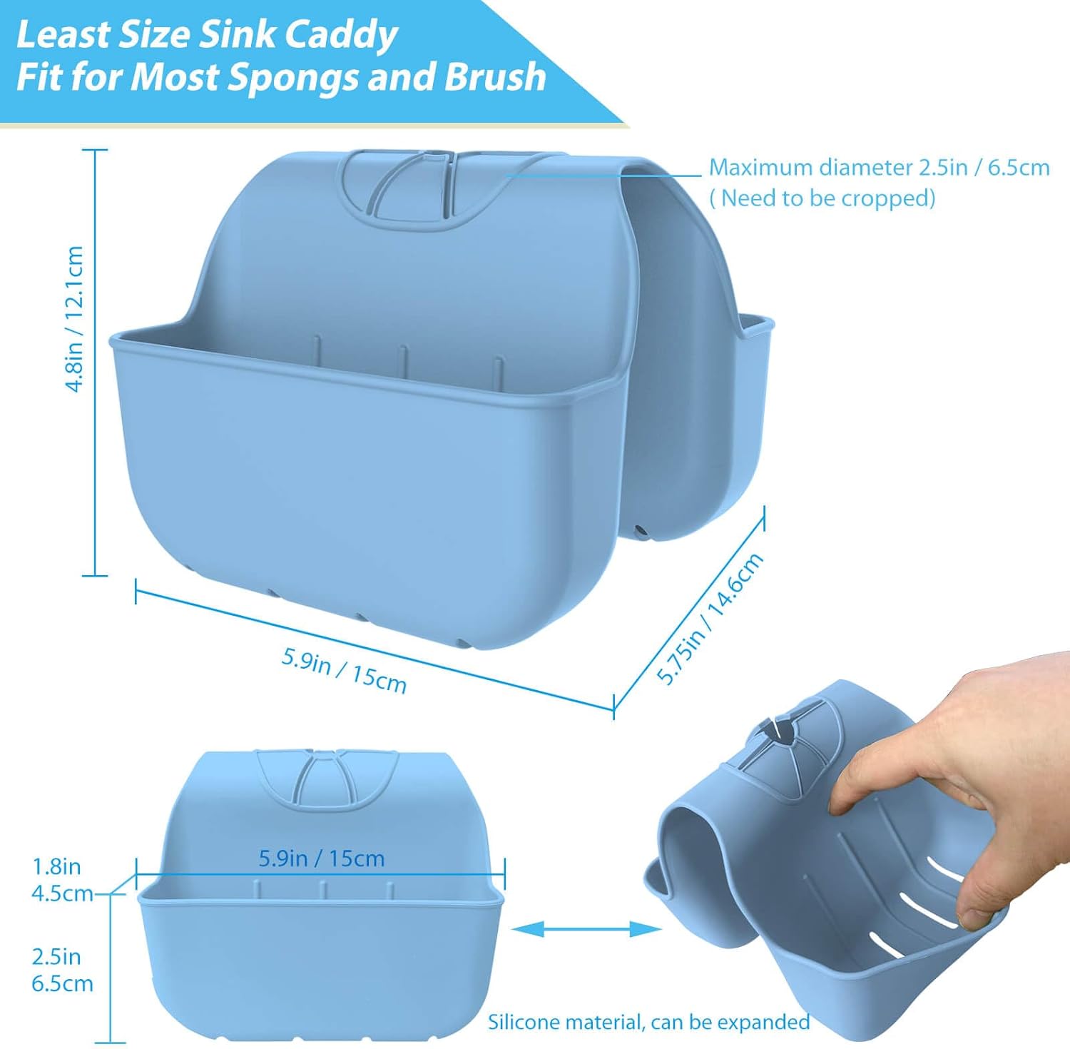 Sponge Holder for Kitchen Sink, Silicone Sink Saddle Caddy Organizer Rack, Sponges Holder Over Faucet, Hanging Kitchen Organizer Accessories Rack Basket Light Blue