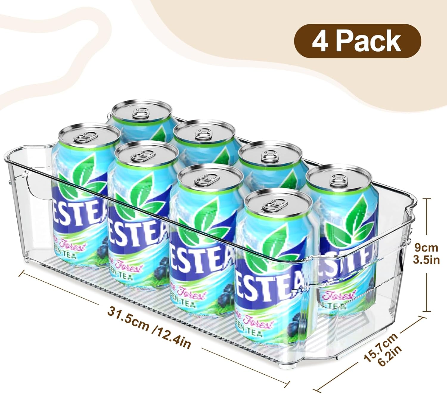 Clear Fridge Organizer, Refrigerator Organizer Bins with Handle, Freezer, Kitchen Cabinet, Pantry Organization, BPA Free Fridge Organizers (12.4 inch 4 Pack)