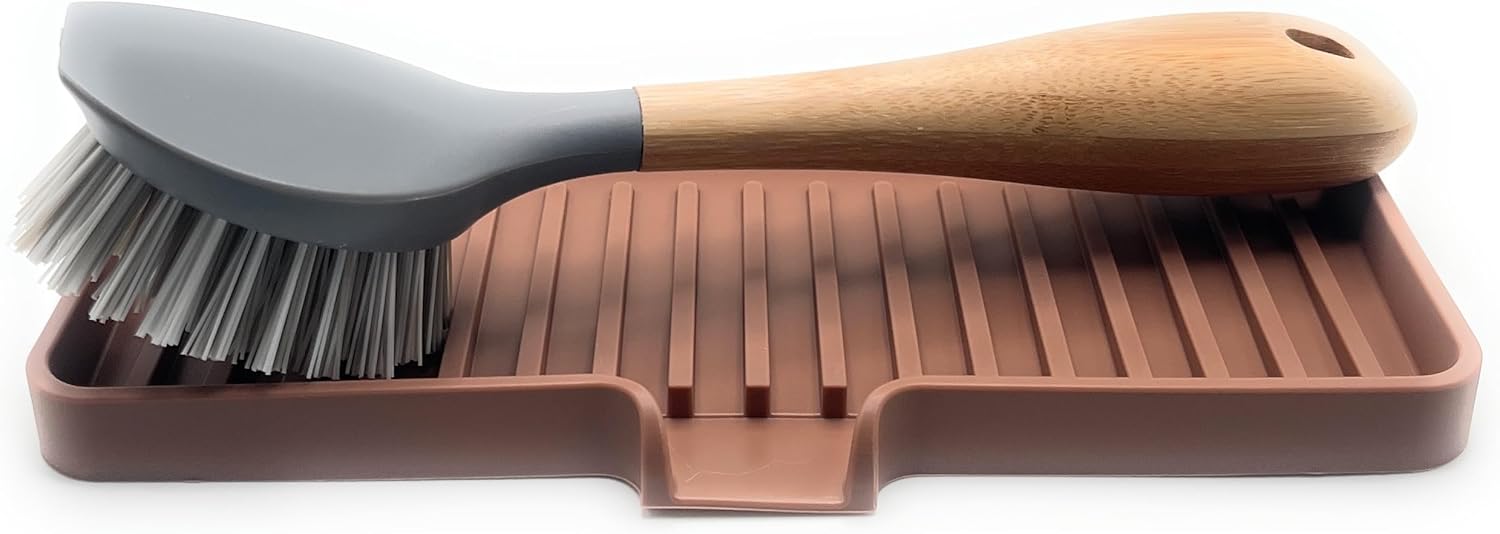 Happitasa Silicone Soap Dish Tray and Sponge Holder with Drain Chute | Bathroom and Kitchen Sink Organizer Caddy (Mocha, 9"x3.5", 5.6 Ounces)