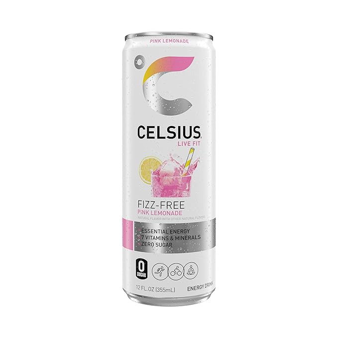 CELSIUS Fizz Free Pink Lemonade, Sugar Free Energy Drink, 12 Fl Oz (Pack of 12)