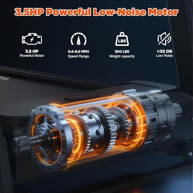 • Powerful 3.5 HP Motor: Equipped with a high-performance 3.0 HP motor, this treadmills for home can provide sufficient and lasting power for your workouts effortlessly, supporting a speed range of 0.6-8.7mph. The motor operates quietly, allowing you to exercise whenever you want, even at night, without worrying about disturbing others in your home.