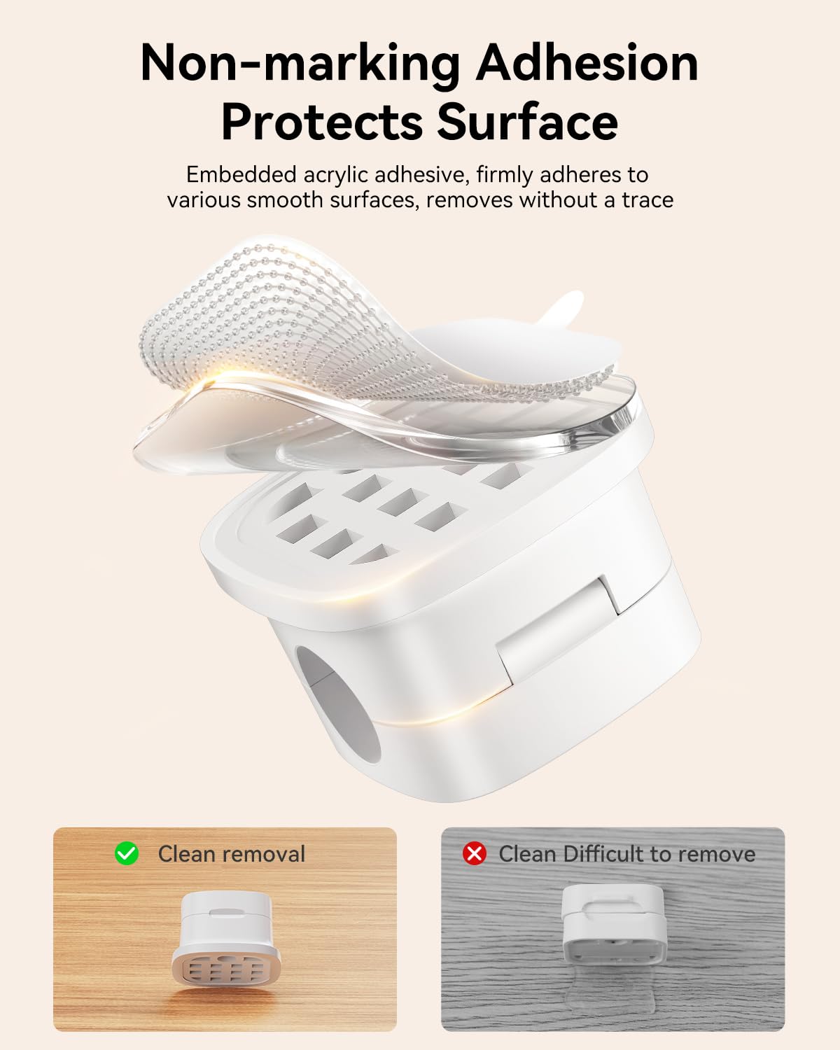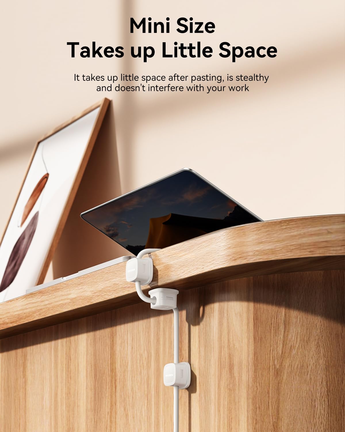- Super Adhesive: The cable management Equipped with Upgrade Acrylic Adhesive, the adhesiveness is increased by 300% compared to ordinary 3M. It firmly adheres to smooth surfaces such as wooden tables/glass/ceramic tiles, and does not leave any residual glue after removal. Each box comes with a Reusable Adhesive Pad, which extends the service life and is more environmentally friendly and economical