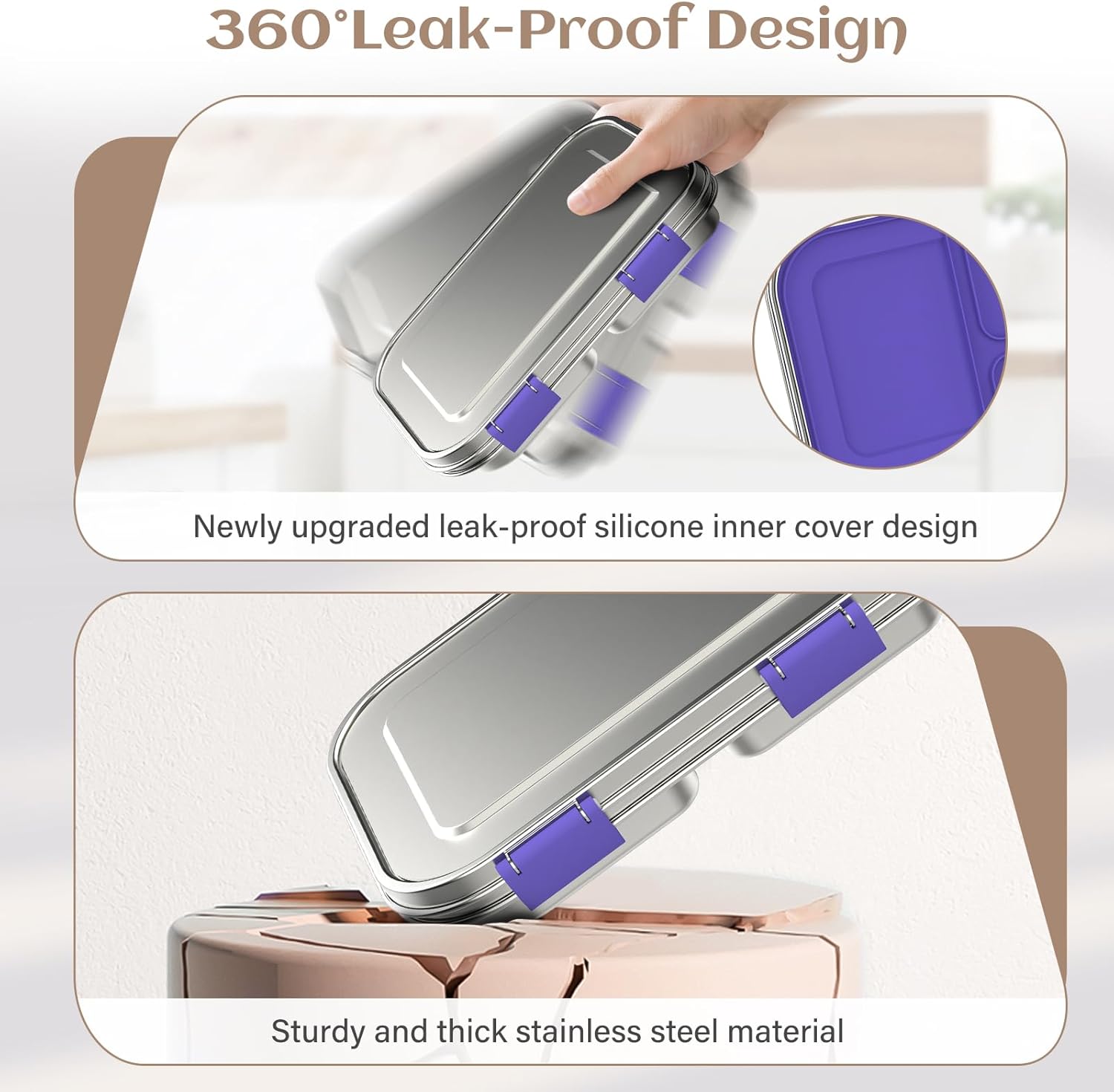 - Leak-Proof Guarantee: This upgraded leak-proof stainless steel bento lunch box has been professionally designed to prevent leakage of thick condiments such as ketchup and salad dressing. Our advanced silicone sealing lid ensures food stays fresh and mess-free all day long. Perfect for kids who love to dip their veggies!