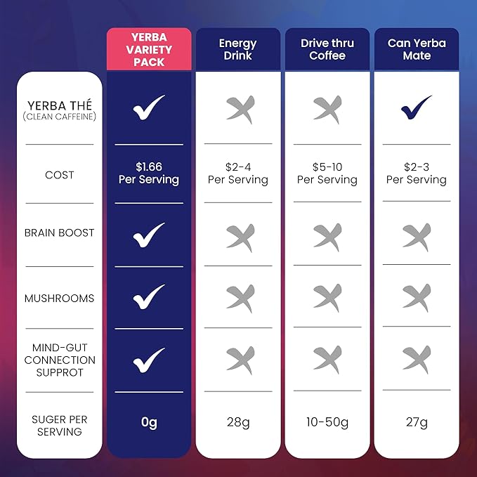 • Sugar-Free, High Power Clean Energy Drink: Stay energized without the crash or guilt – our yerba mate sugar-free formula is crafted for clean living. As a top choice in clean energy drinks, this yerba energy drink boosts vitality naturally. Trusted by those who want a smarter yerba mate drink that doubles as a brain fog supplement and gut health supporter.
